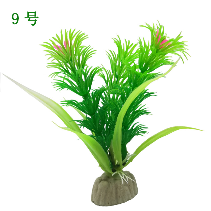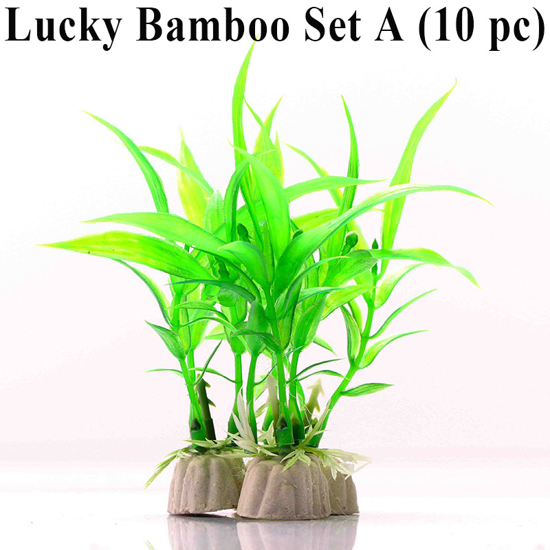 10pc Aquarium Fish Tank Decor Artificial Plants Flower Grass Lucky Bamboo Leaves