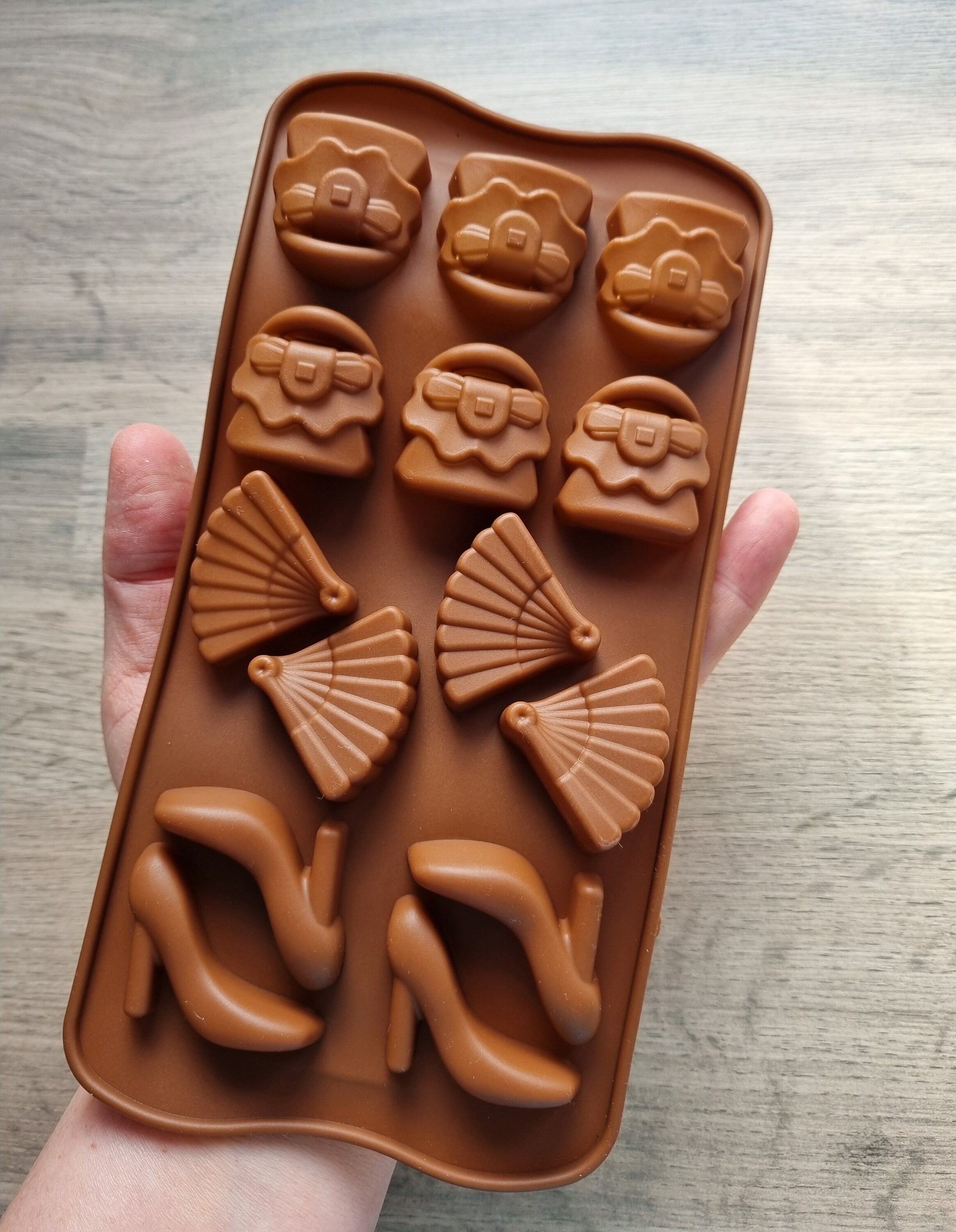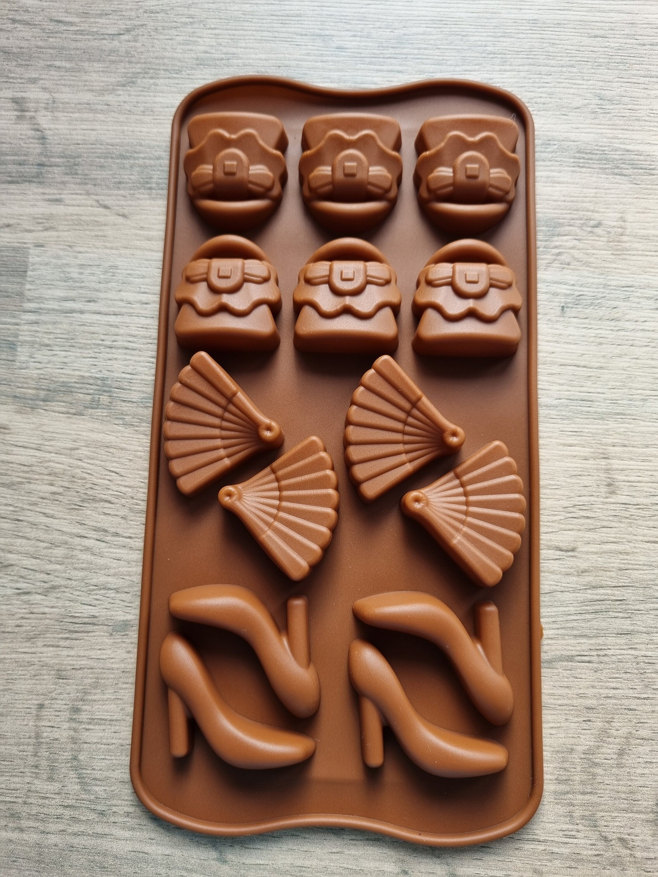 Name: 12 Handbag High Heel Shoes Chocolate Mould