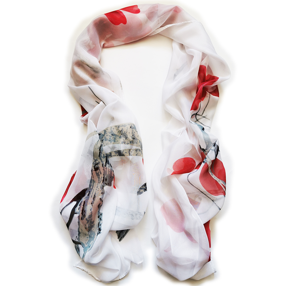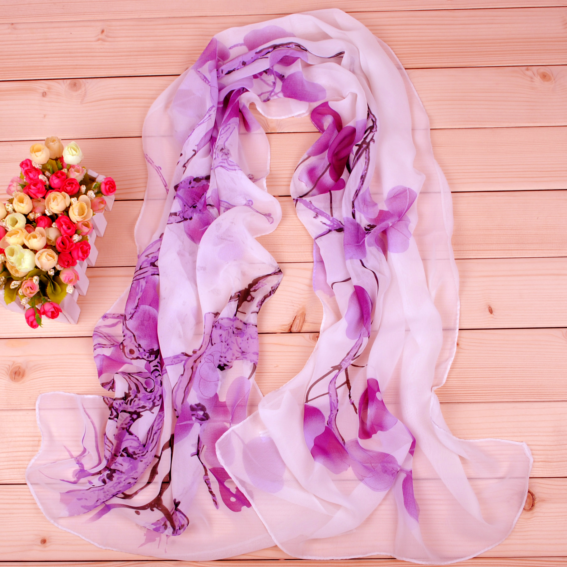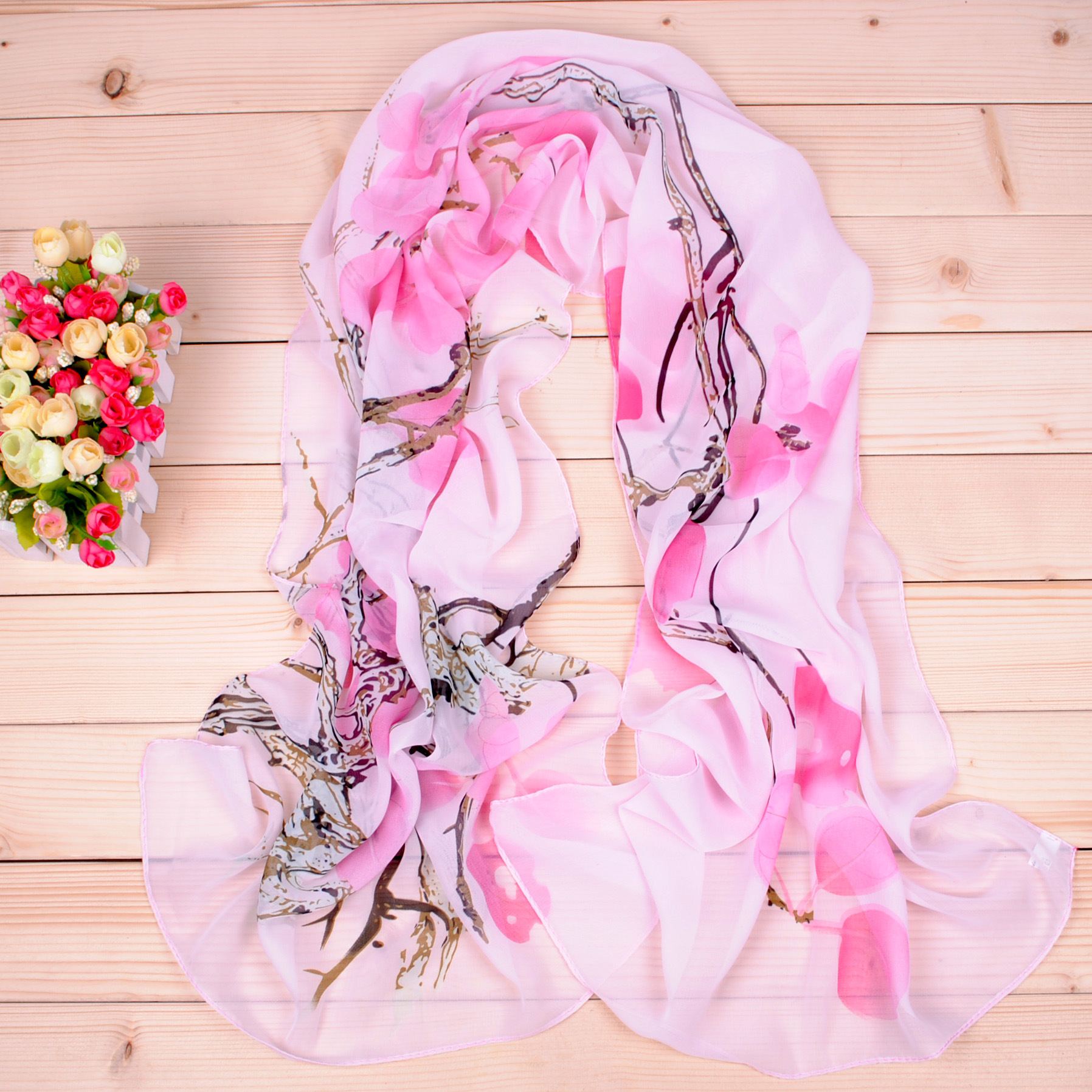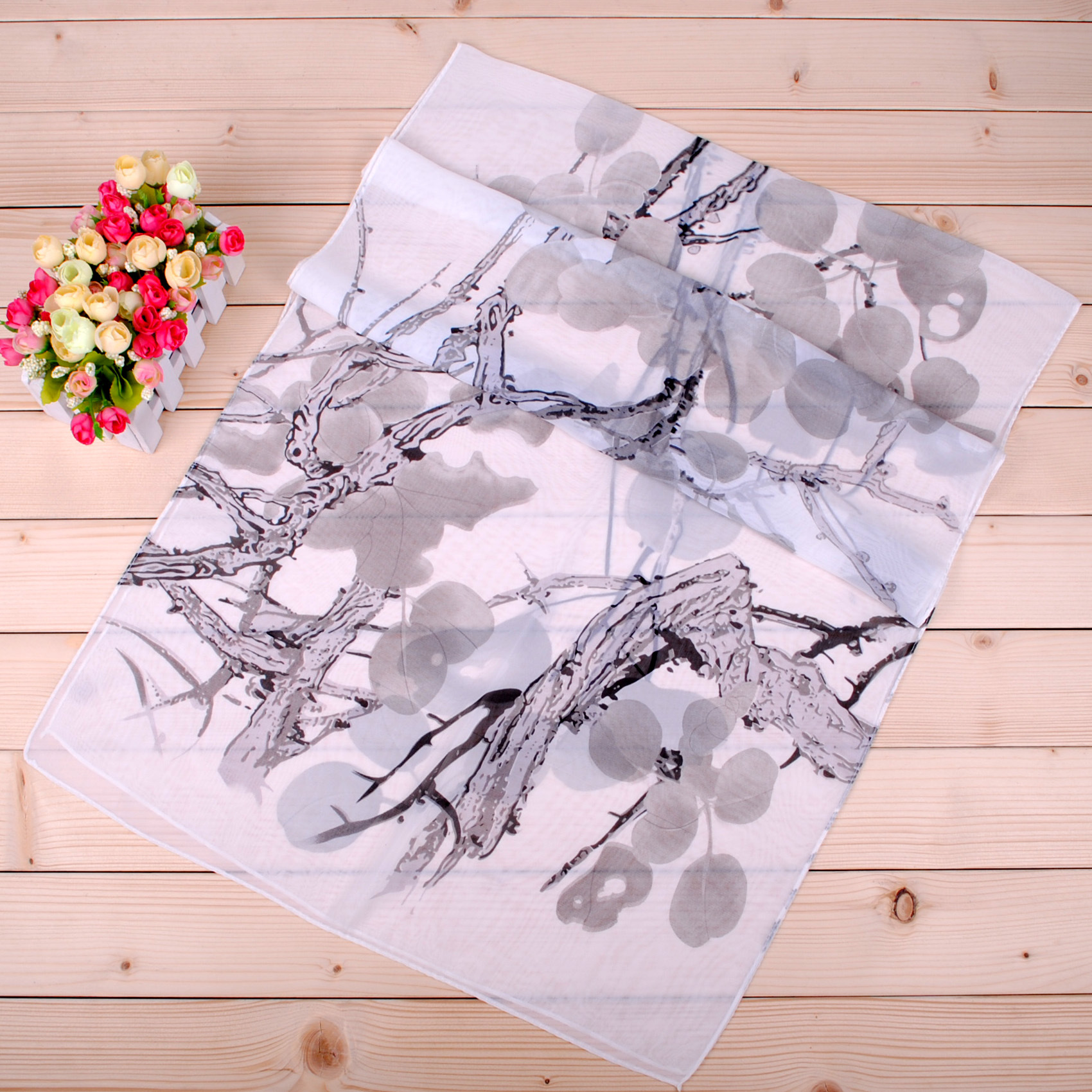 160 50cm Chinese Paint Style Flowers And Tree Print Floral X078 Fashion Ladies Scarves Chiffon Scarf