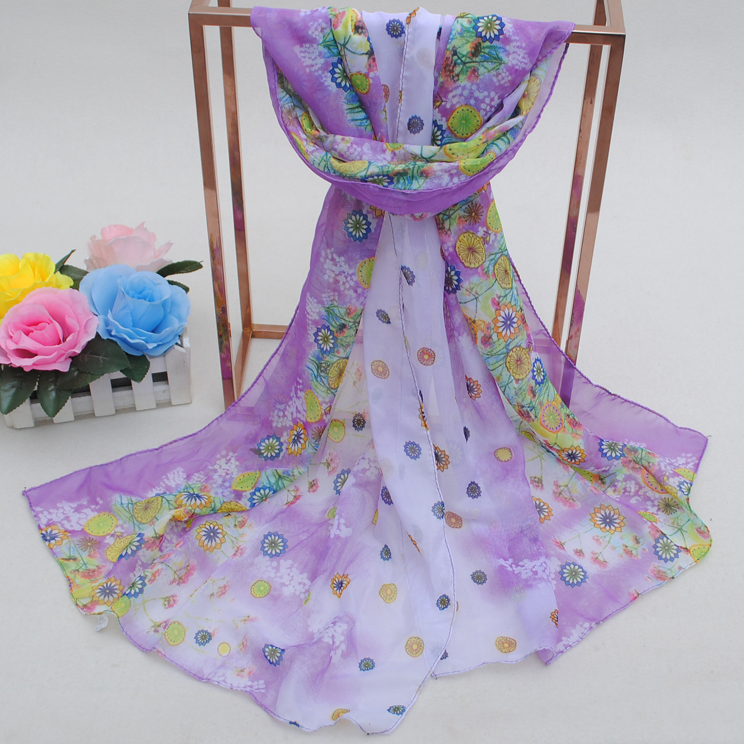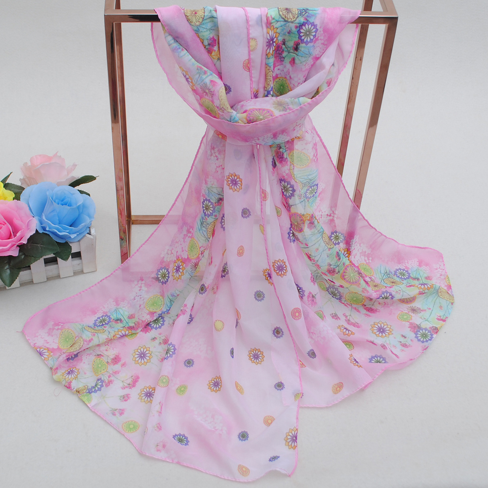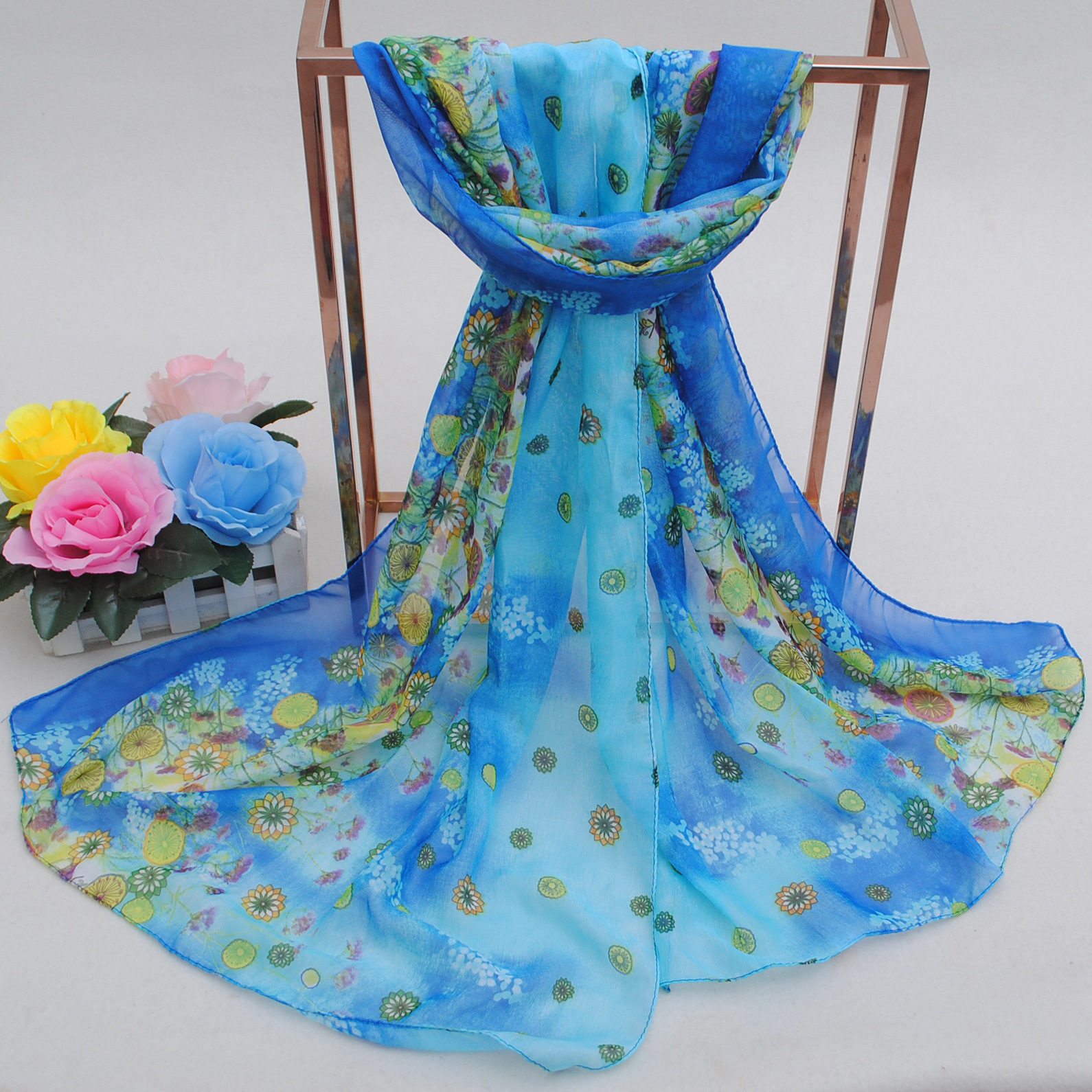 160 50cm Flowers Print Floral X256 Fashion Ladies Scarves Chiffon Scarf Womens Shawls