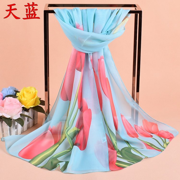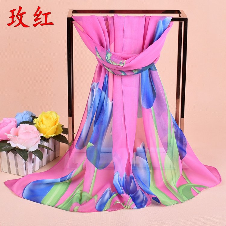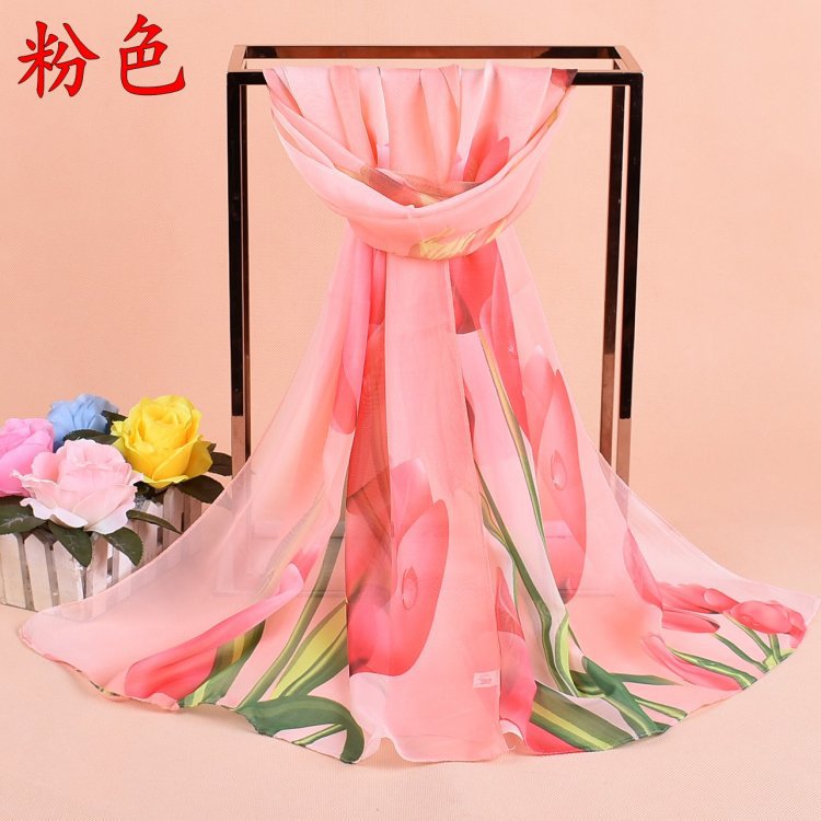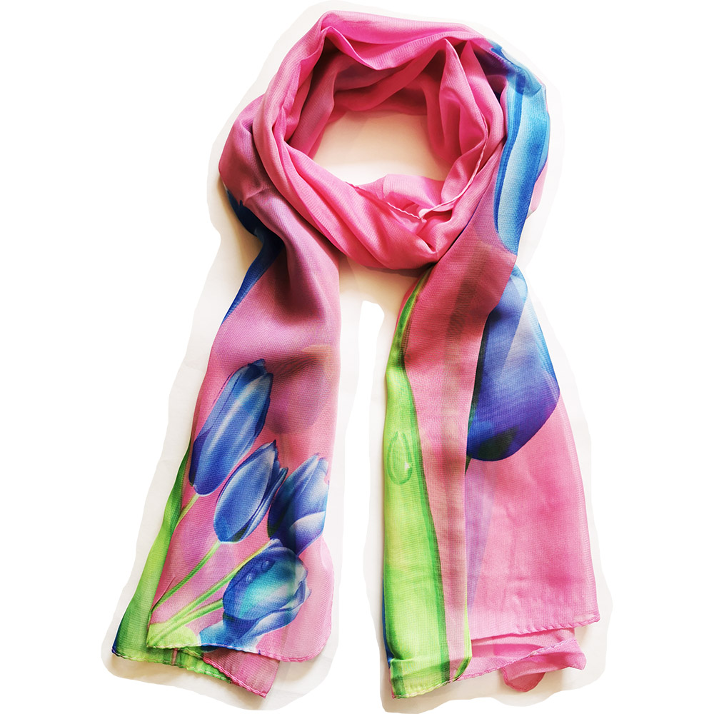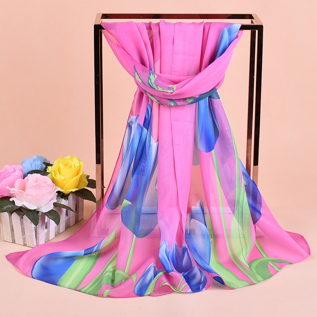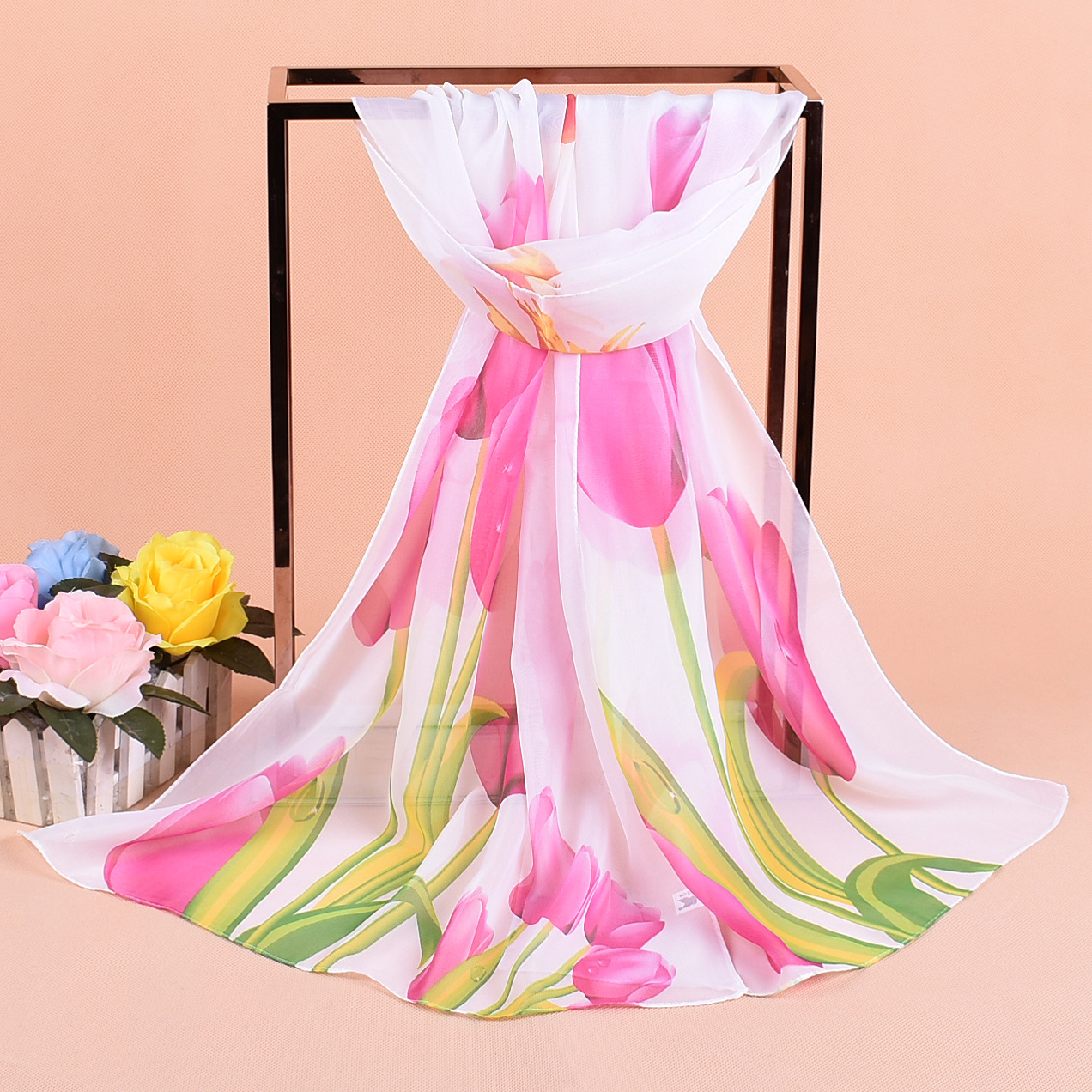 160 50cm Tulip Flowers Print Floral X313 Fashion Ladies Scarves Chiffon Scarf Womens Shawls