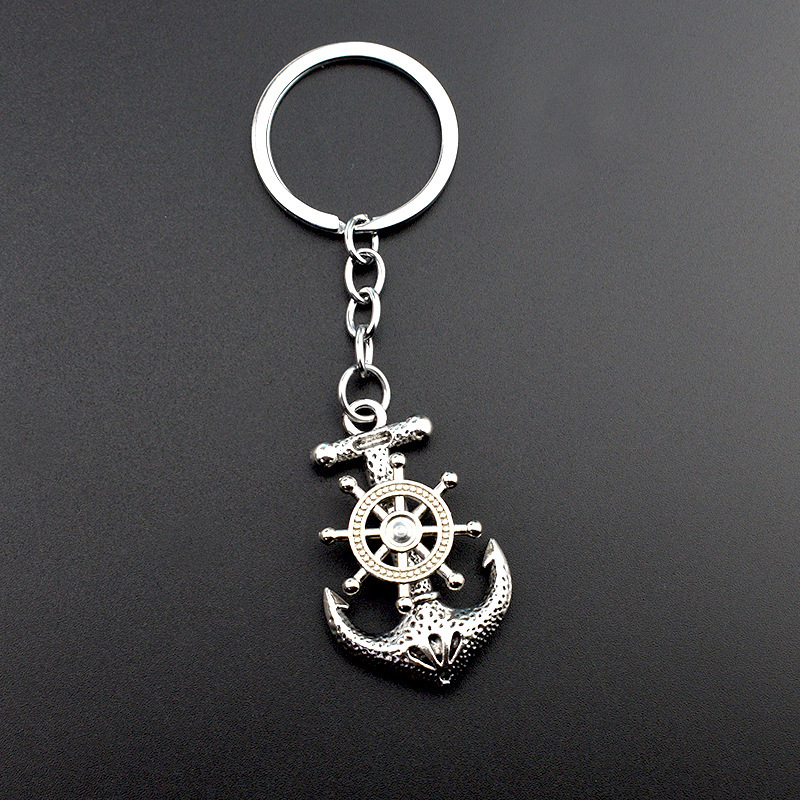 3D Boat Ship Sailor Anchor Steering Wheel Silver Metal Keyring Cruise Holiday
