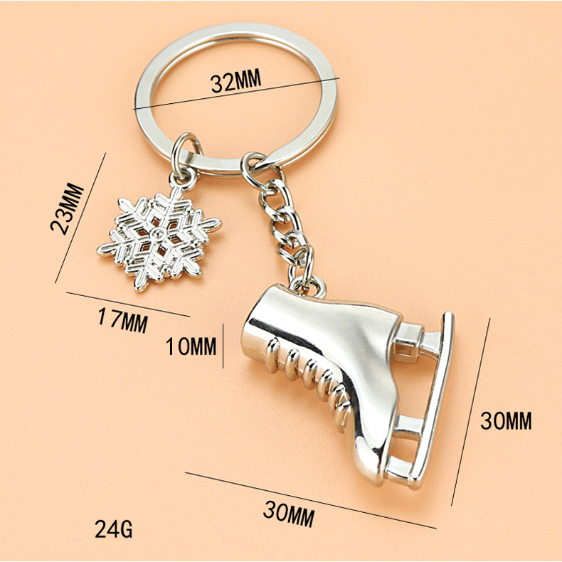 3D Sports Ice Skate Roller Skate Silver Metal Keyring Key Ring Keychain Gift