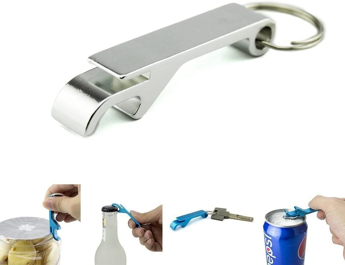 4 in 1 Multifunction Silver Stainless Steel Metal Bottle Opener Keyring Keyfob