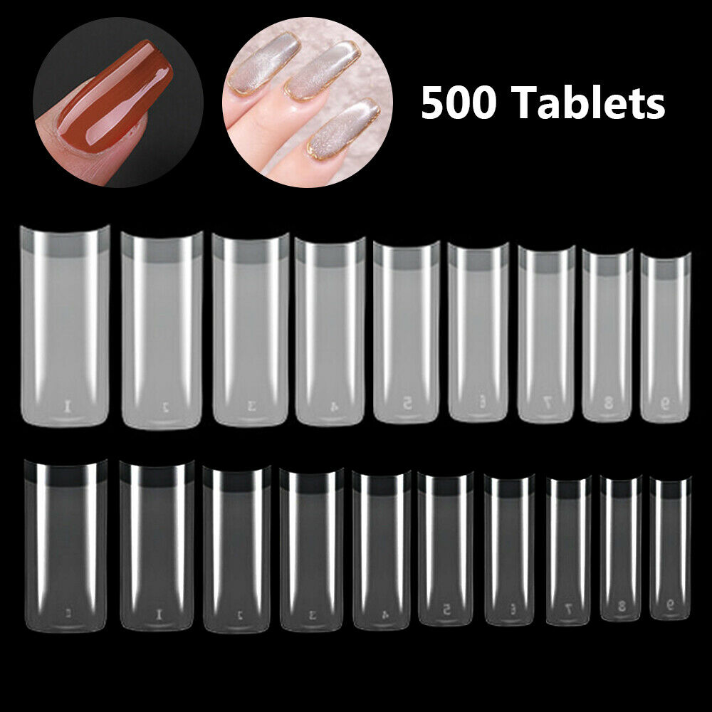 500pcs French Square False Nail Tips Fake Nails With Glue Nail File