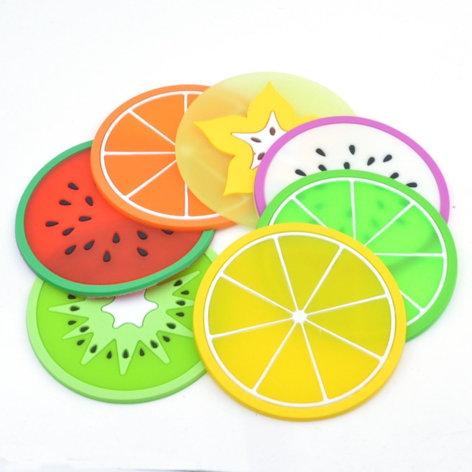 6PC Fruit Coaster Set Colorful Silicone Cup Drinks Holder Mat Tableware Placemat