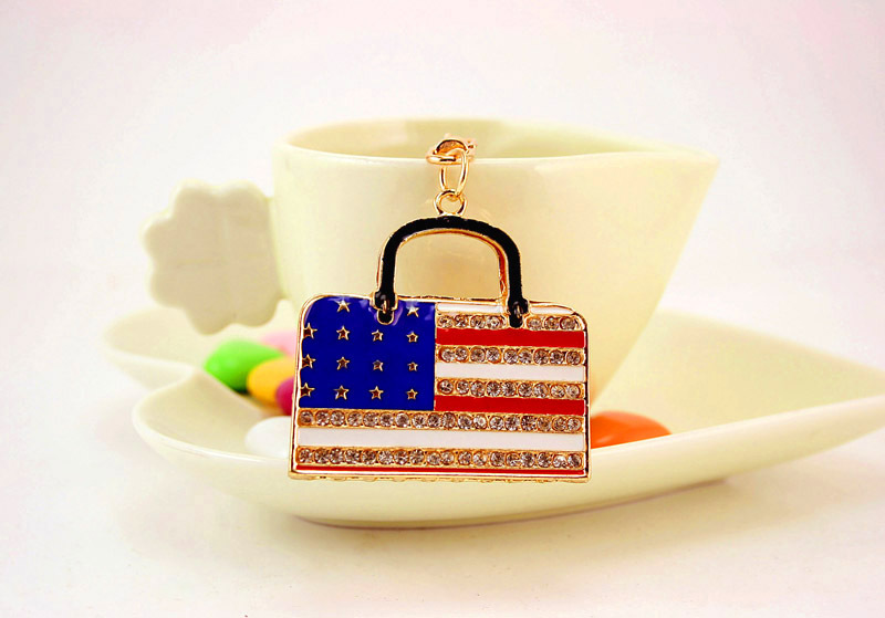 American Flag Handbag Shape Crystal Diamante Bag Charm