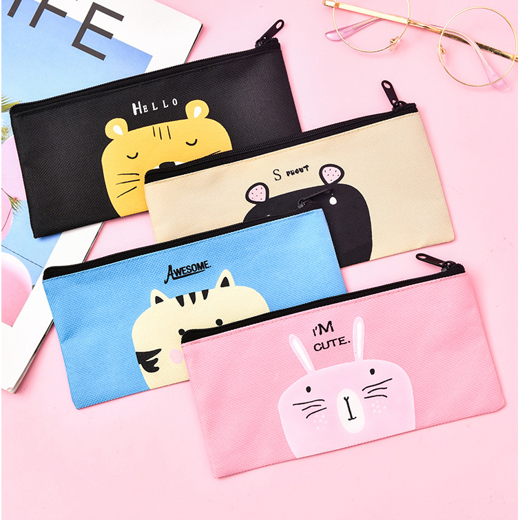 Animals Cat Rabbit Bear Tiger Canvas Cute Pencil Cases Cosmetics Make Up Bags