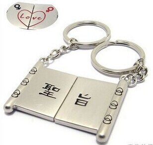 Antique Book Love You Silver Metal Couple Keyrings Lovers Puzzle Key Chains Set