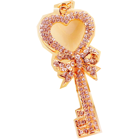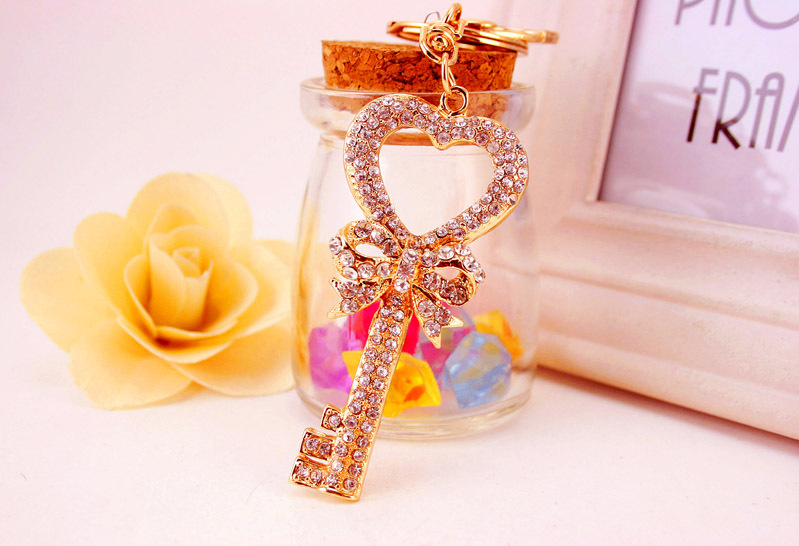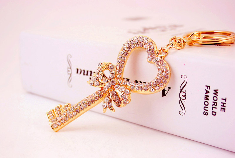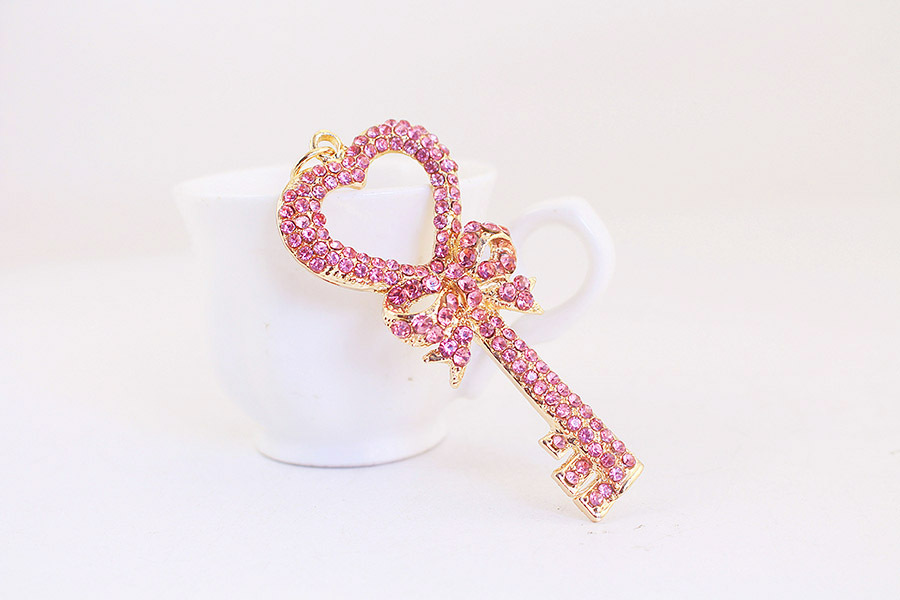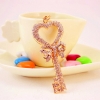 Antique Key Shaped With Love Heart And Bow Crystal Diamante Rhinestone Bag Charms Handbag Keyrings