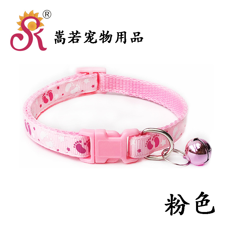 Name: Baby Footprint Patterned Adjustable Kitten Cat Collar With Bell And Snap Buckle