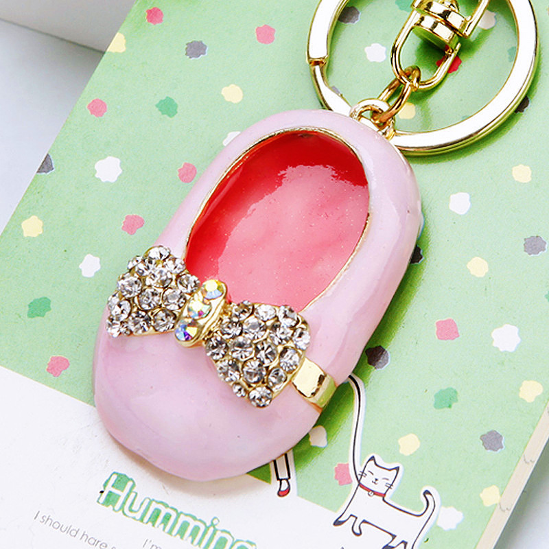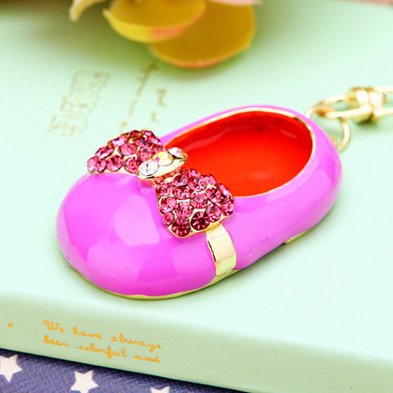 Details:Ballet Dance Baby Shoes Crystal Diamante Bag Charm Handbag Women Keyring Pendant