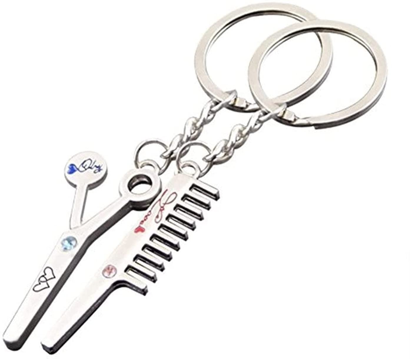 Details:Barbers Scissors Comb Silver Metal Couple Keyrings Set Lovers Puzzle Key Chains