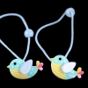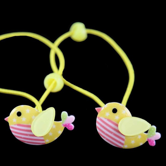 Hair elastics with a plastic star, polka-dot and stripes print bird.