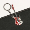 Black Red Electric Guitar Silver Metal Keyring Key Chain Novelty Gift Present