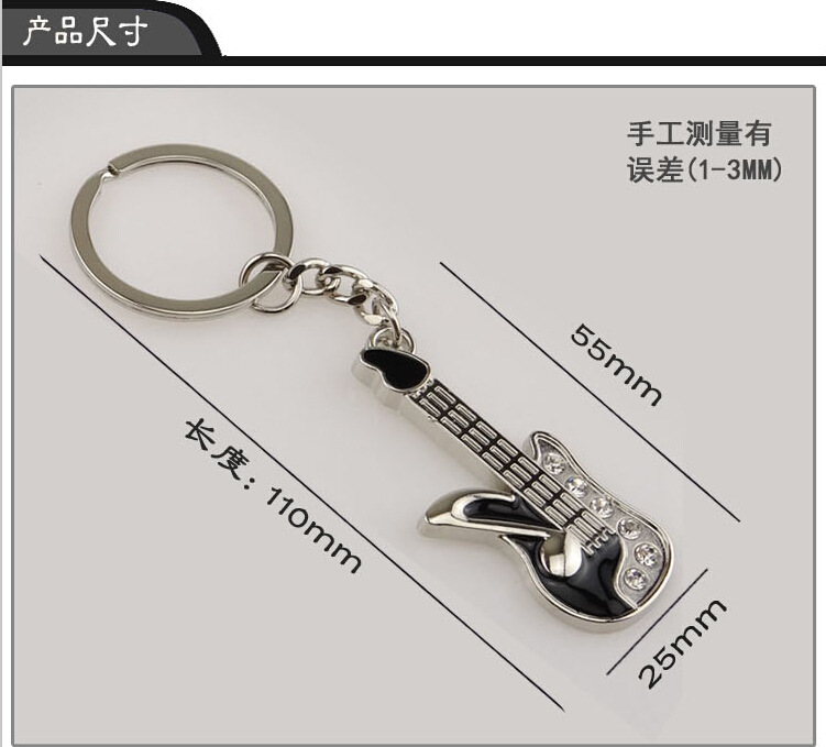 Details:Black Red Electric Guitar Silver Metal Keyring Key Chain Novelty Gift Present