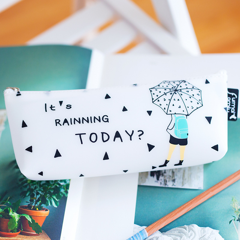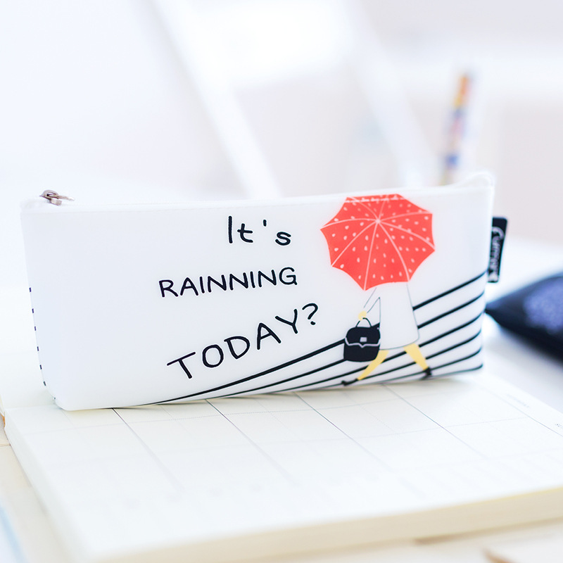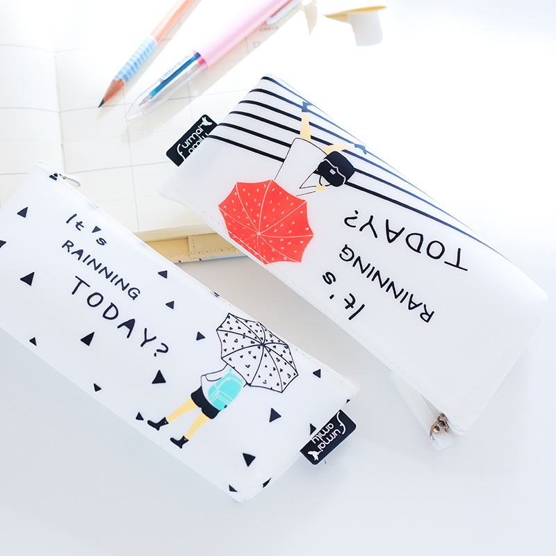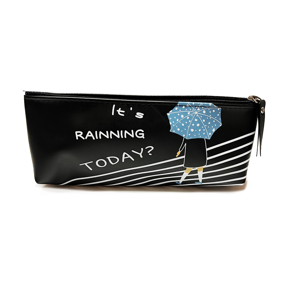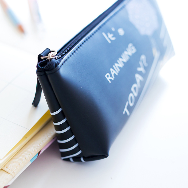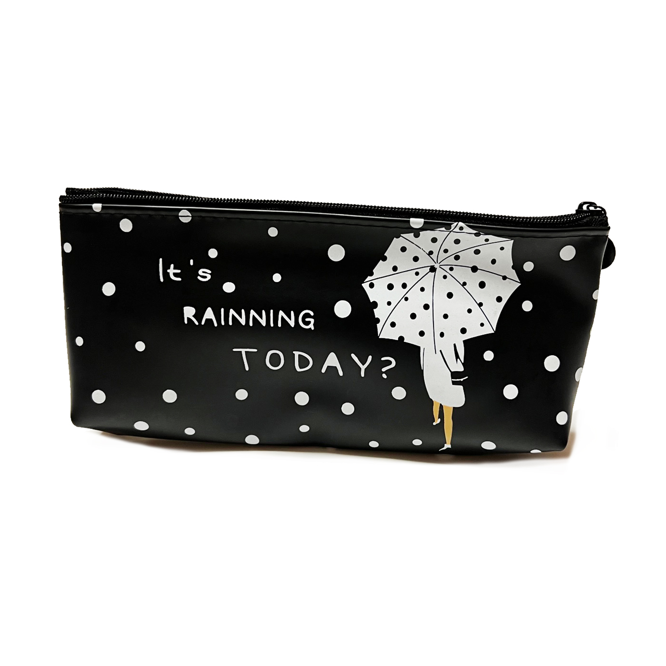Black White Dots Stripes Pattern Girl Rain Soft Leather Pencil Case Cosmetic Bag