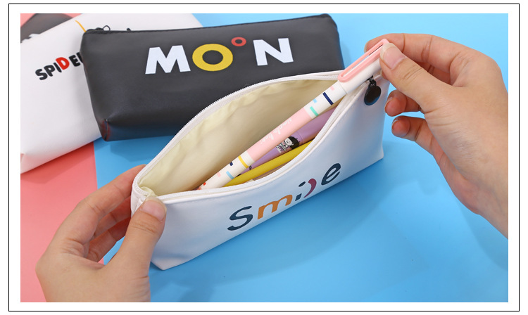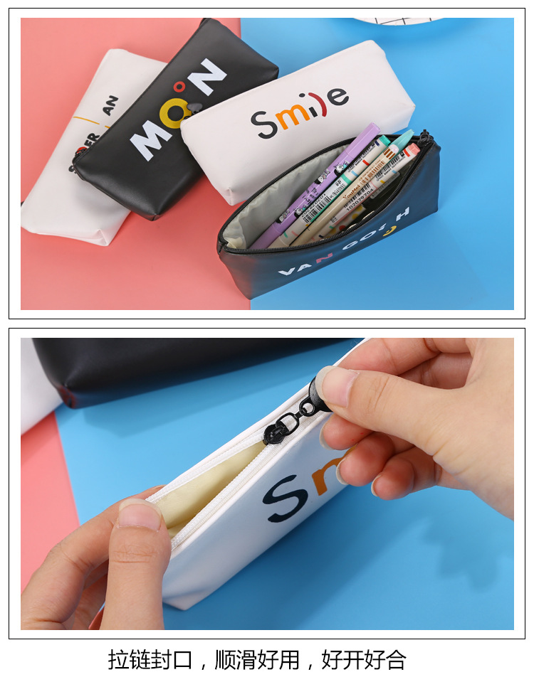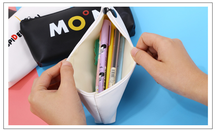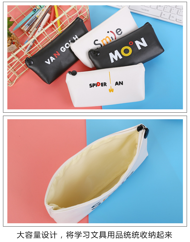 Black White PU Leather Cute Pencil Cases Cosmetics Make Up Bags Pen Pouches