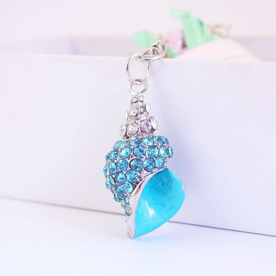 Blue Conch Crystal Diamante Bag Charms Seaside Holiday Handbag Keyrings Pendant