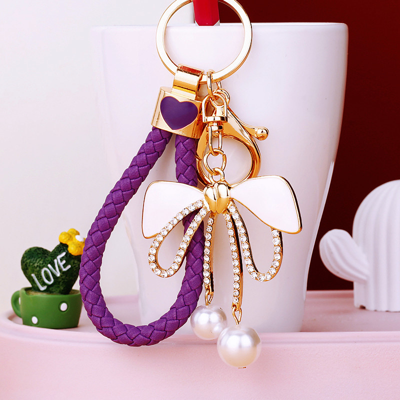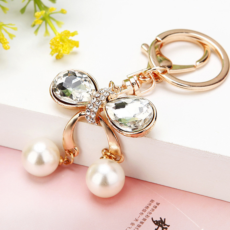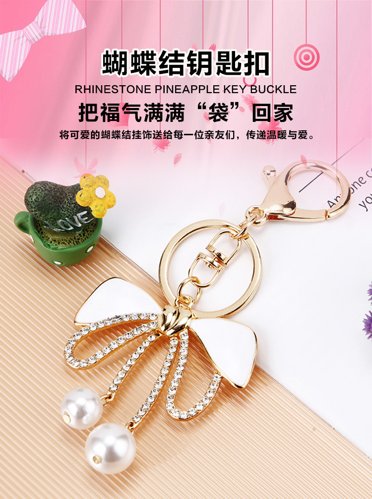 Details:Bow Crystal Diamante Rhinestone Bag Charms Handbag Women Keyrings Pendant