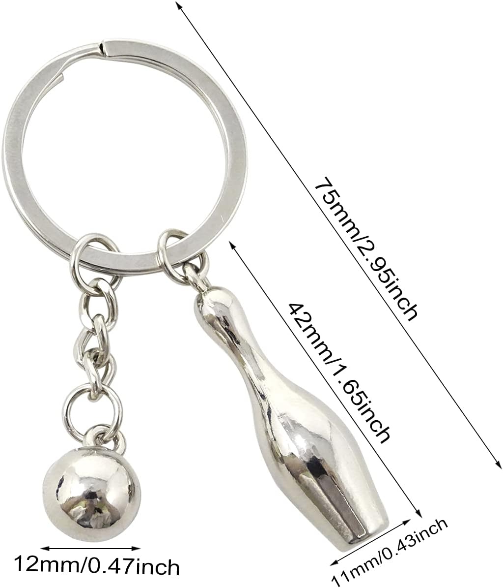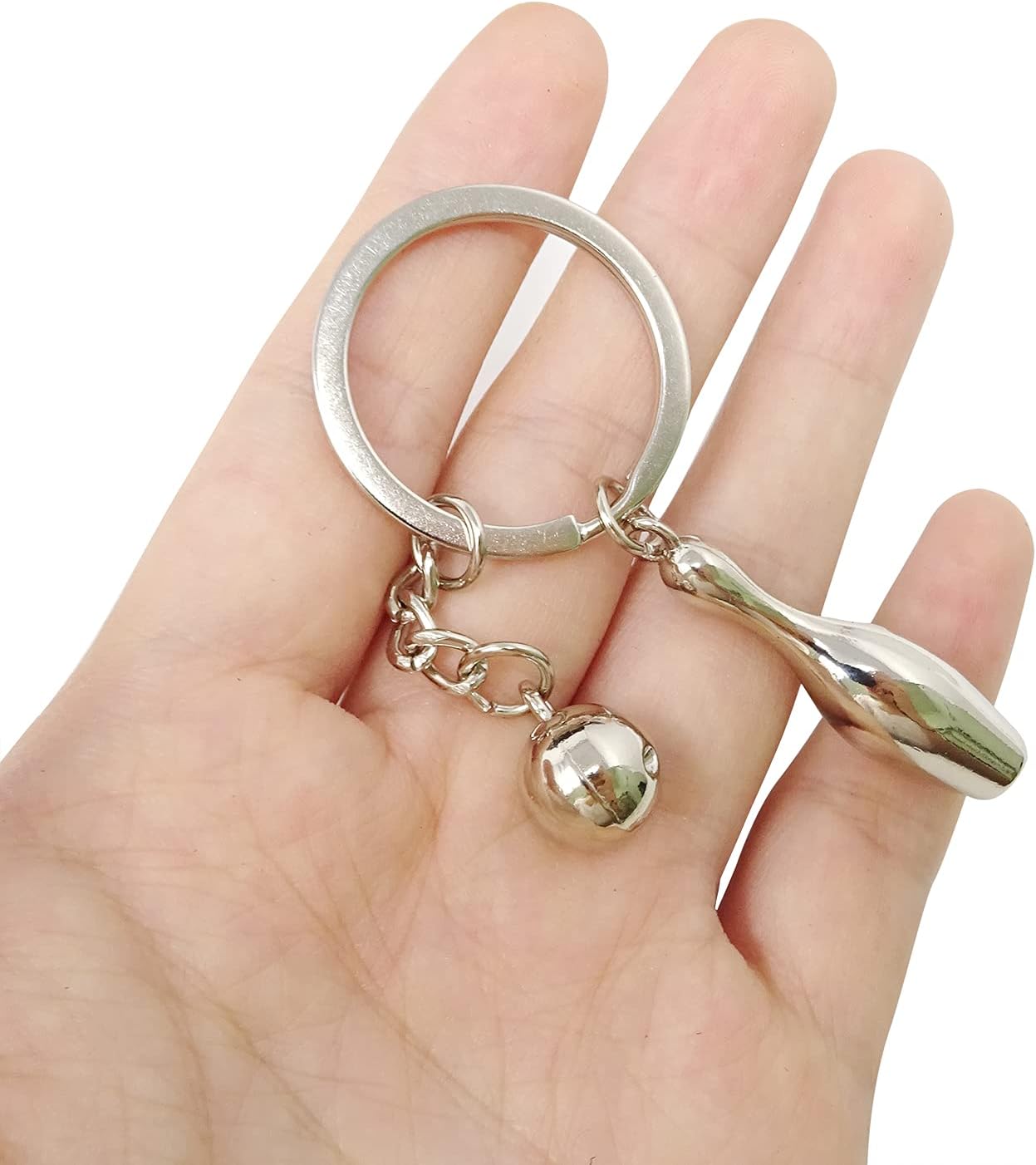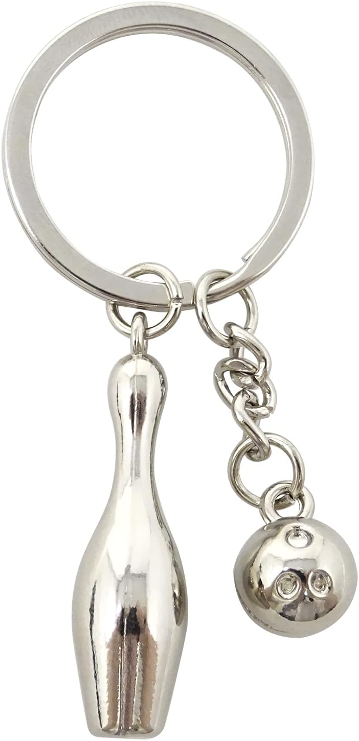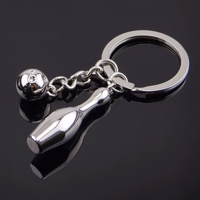 Bowling Game Pin Ball Silver Keyrings Novelty Metal Key Rings
