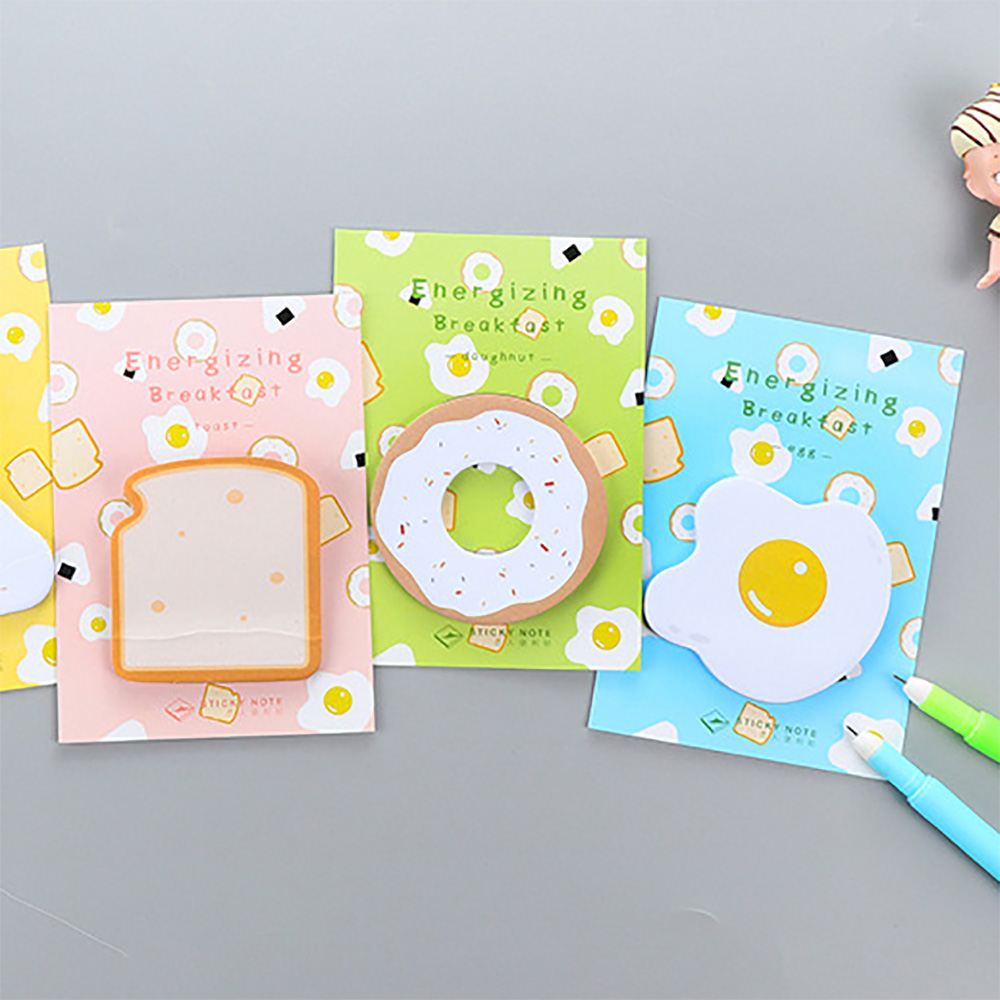 Details:Breakfast Food Toast Egg Doughnut Shaped Cute Sticky Notes Novelty Sticky Note Pad