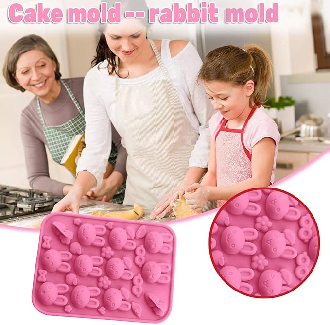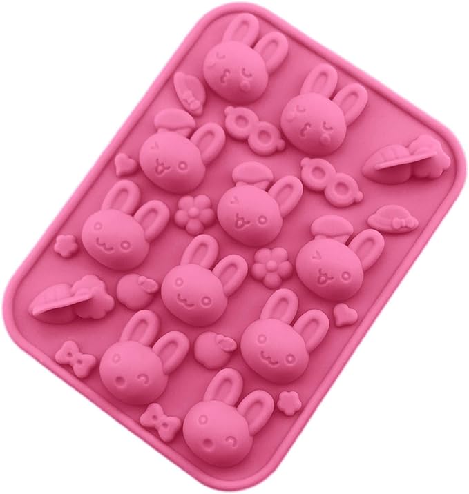 Bunny Rabbits Carrots Pink Silicone Mould Chocolate Fondant Jelly Ice Cube Mold