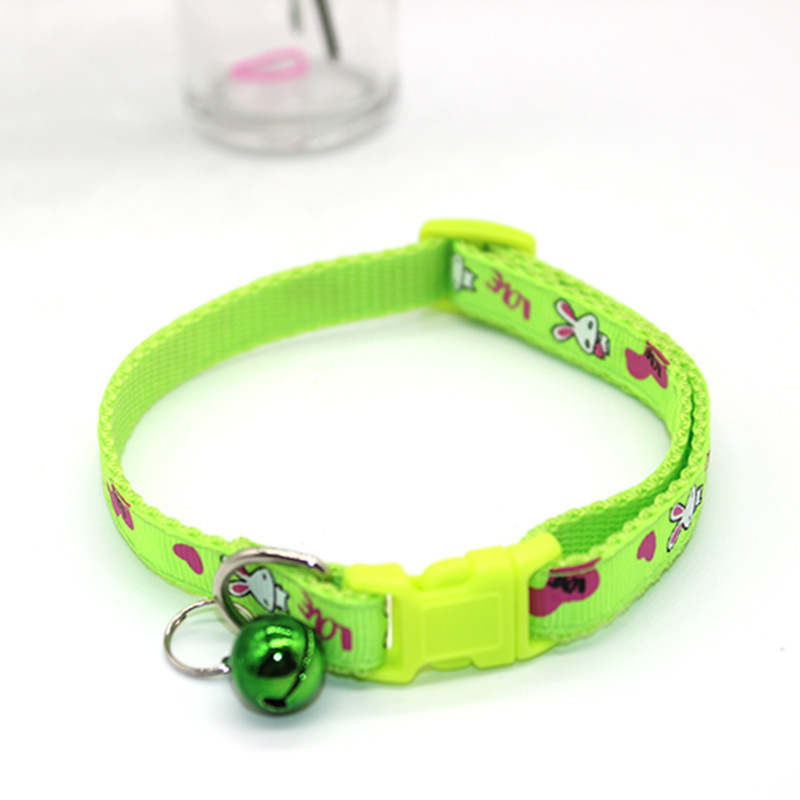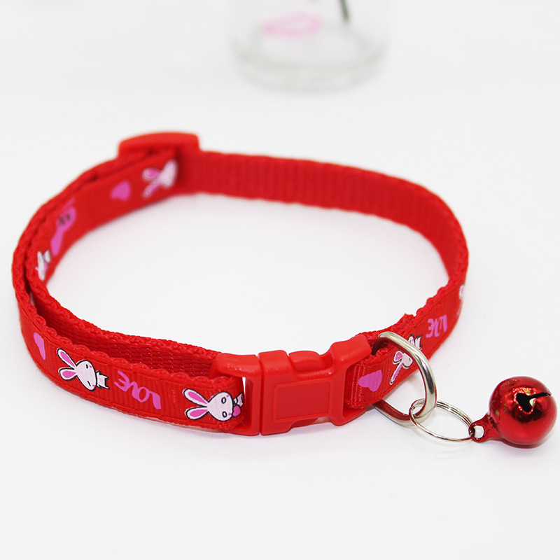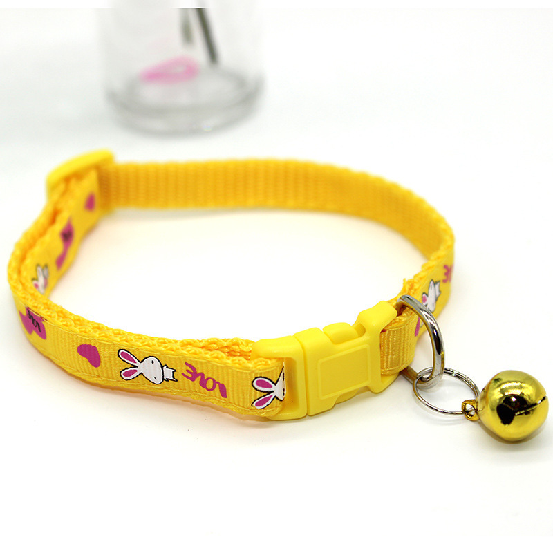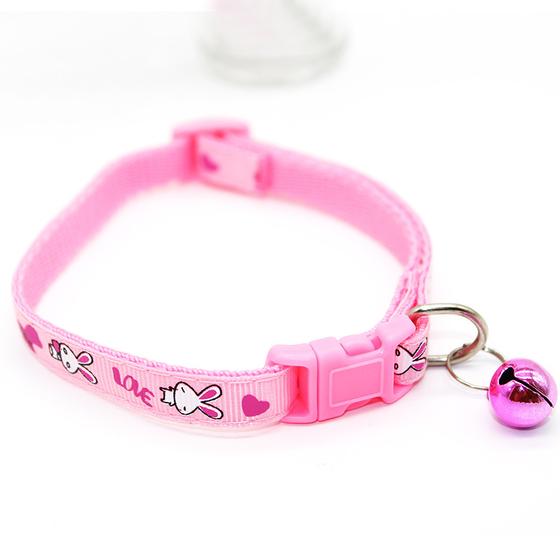Bunny Rabbits Patterned Cat Collar Adjustable Kitten Puppy Dog Bell Snap Buckle