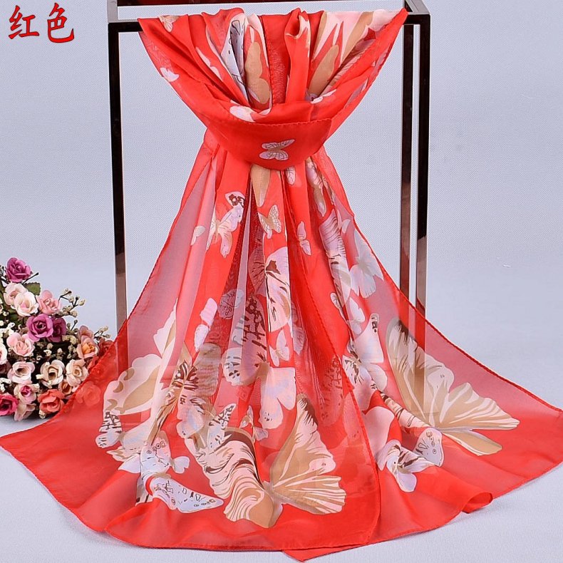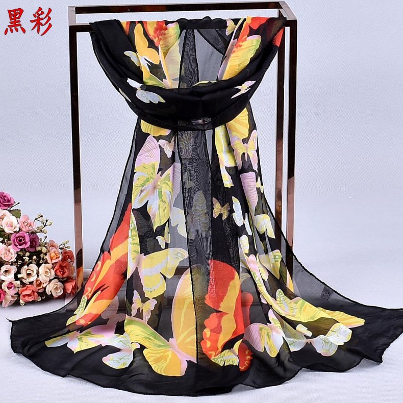 Details:Butterflies Flowers Floral Fashion Ladies Scarves Chiffon Scarf Womens Shawls