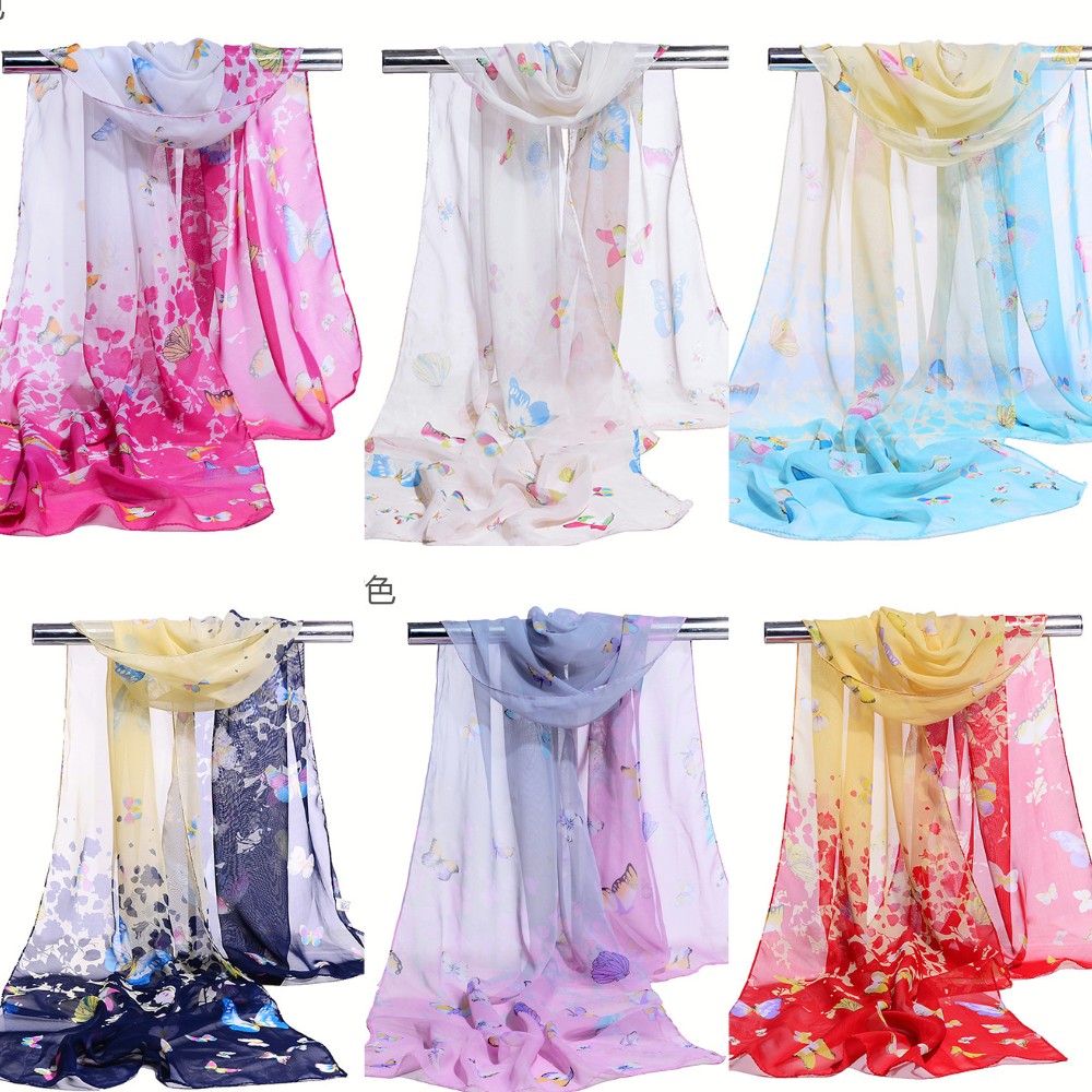 Details:Butterflies Patterned Fashion Ladies Scarves Chiffon Scarf Womens Shawls