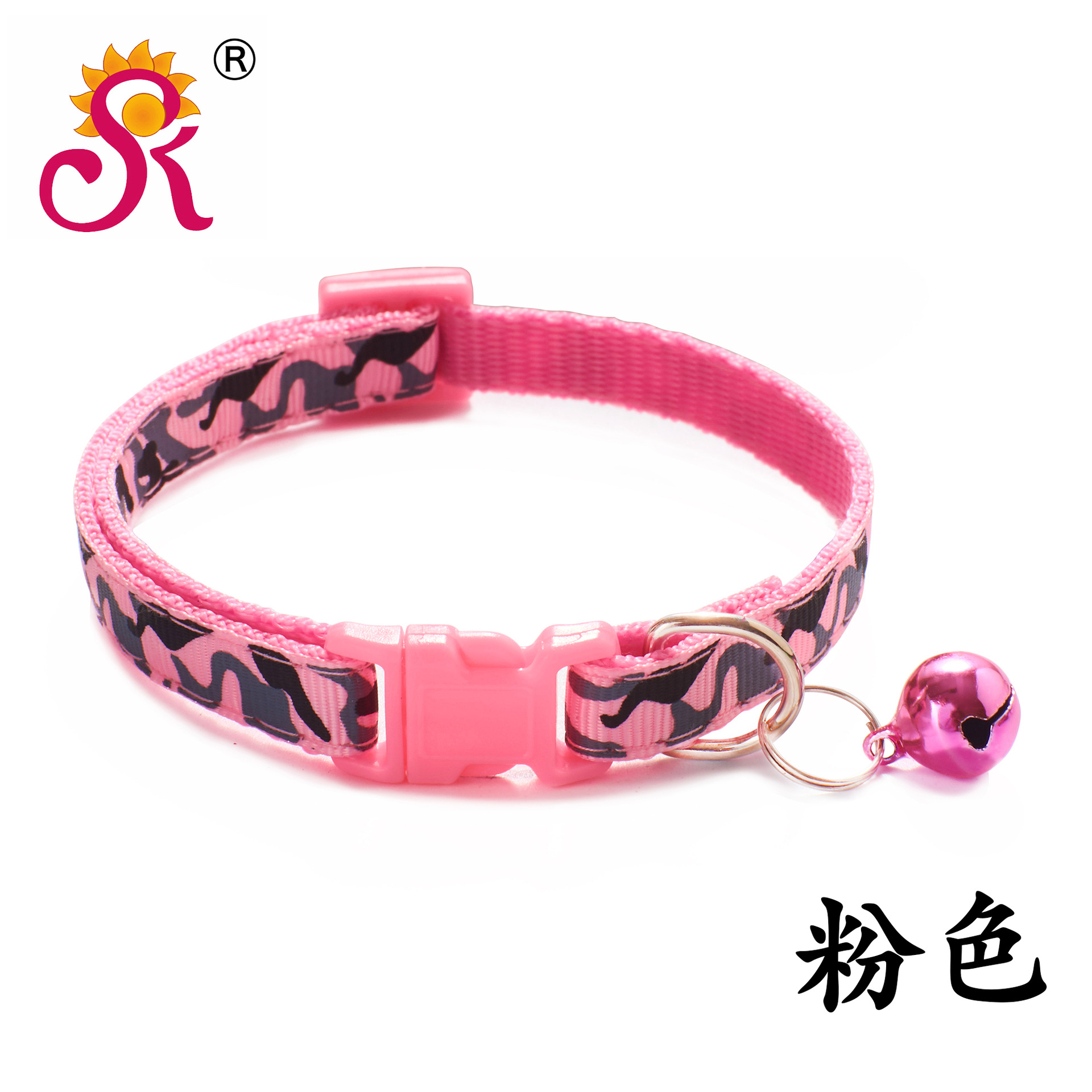 Camouflage Patterned Adjustable Kitten Cat Collar With Bell And Snap Buckle