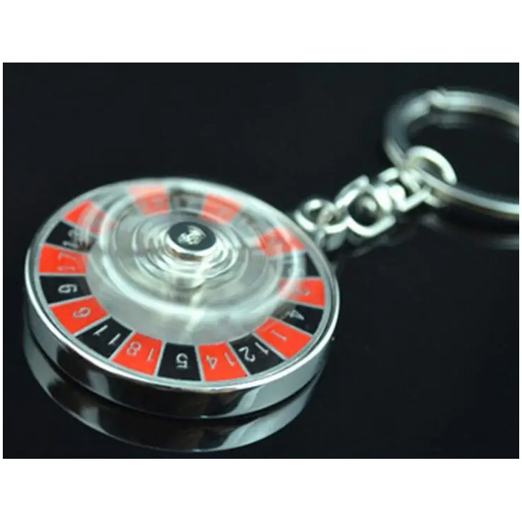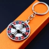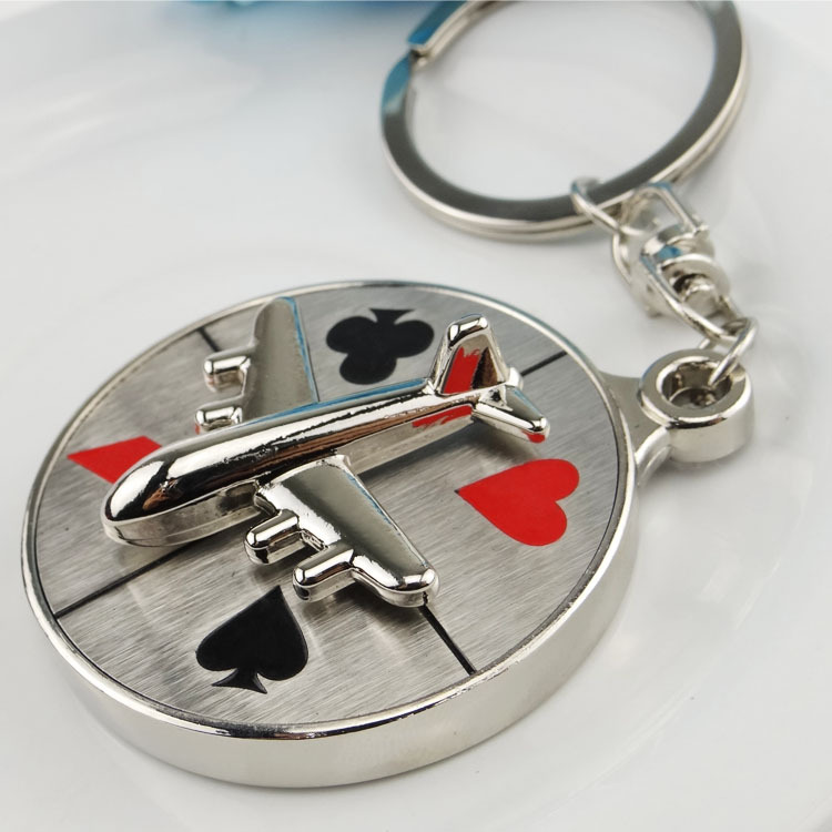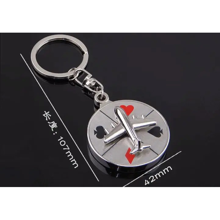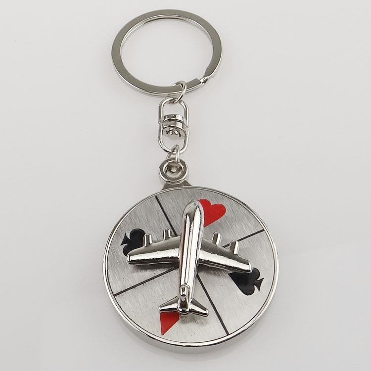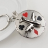 Casino Roulette Spinning Wheel Silver Metal Keyring Airplane Playing Card Pips