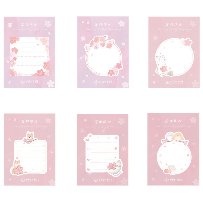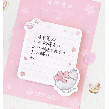Cat Dog Birds Cherry Blossom Pink Floral Sticky Notes Novelty Sticky Note Pad