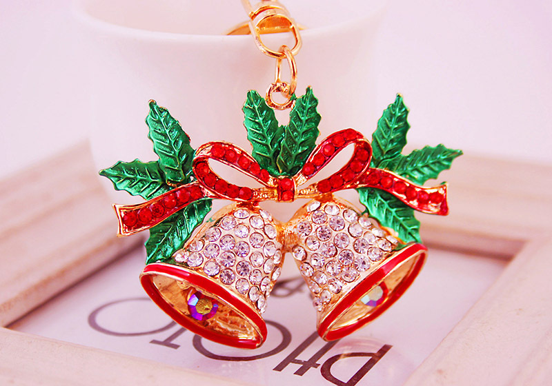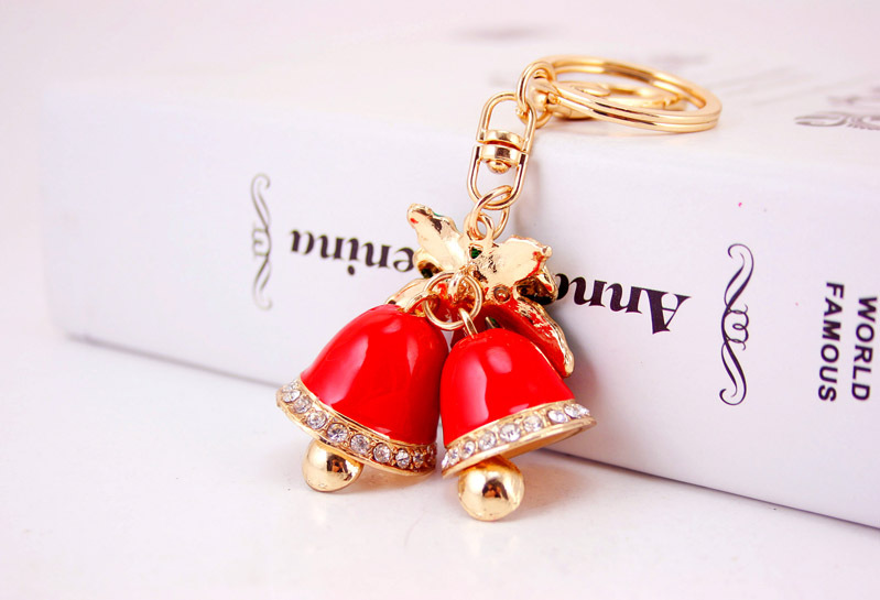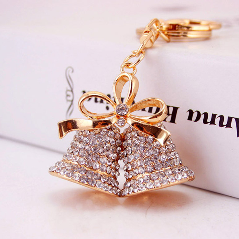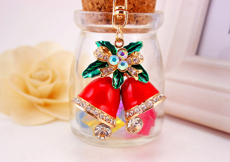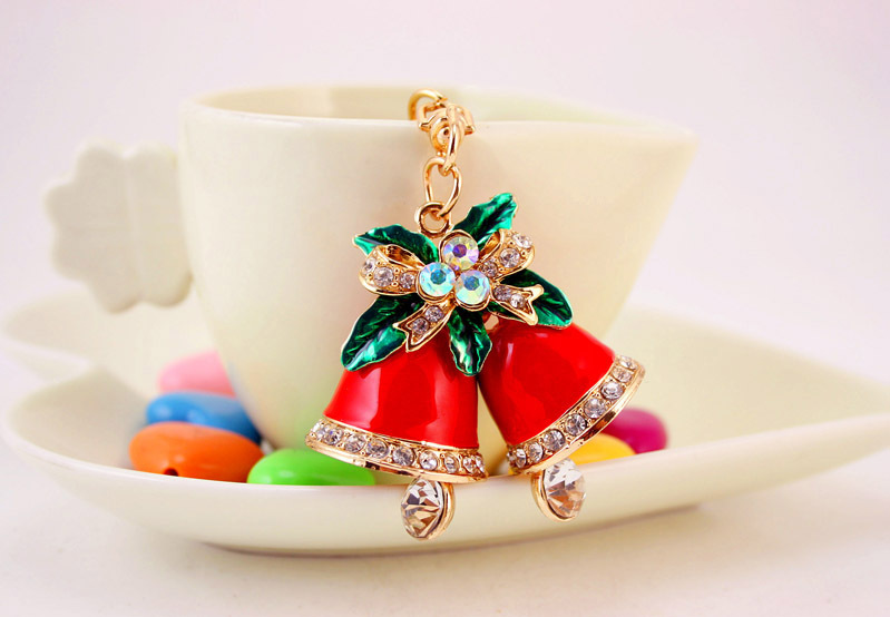 Christmas Jingle Bells Crystal Diamante Bag Charms Handbag Keyrings Pendant