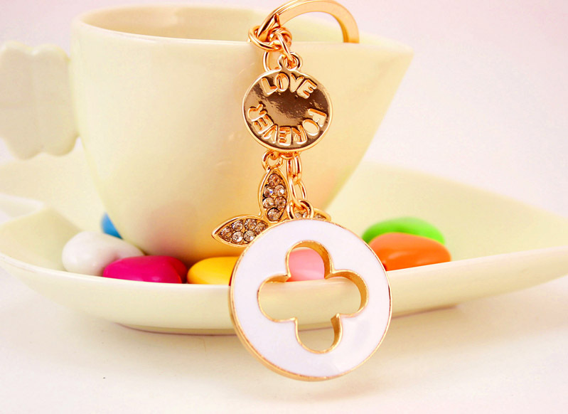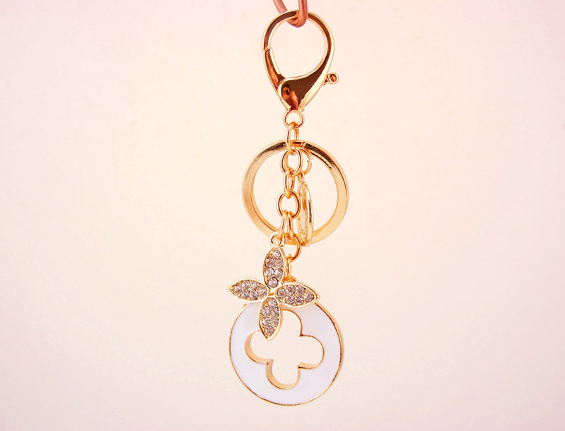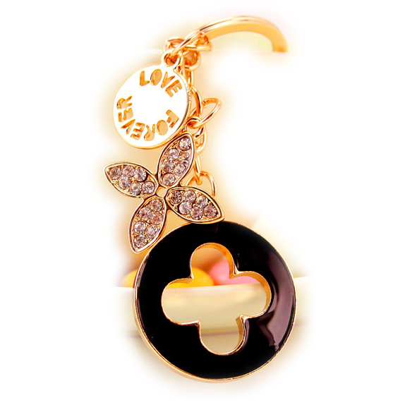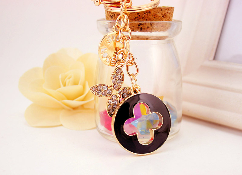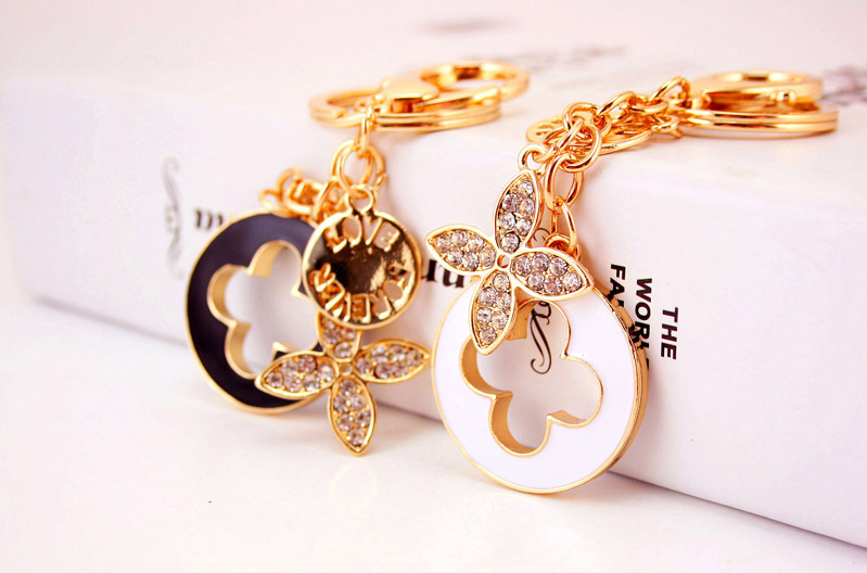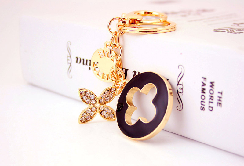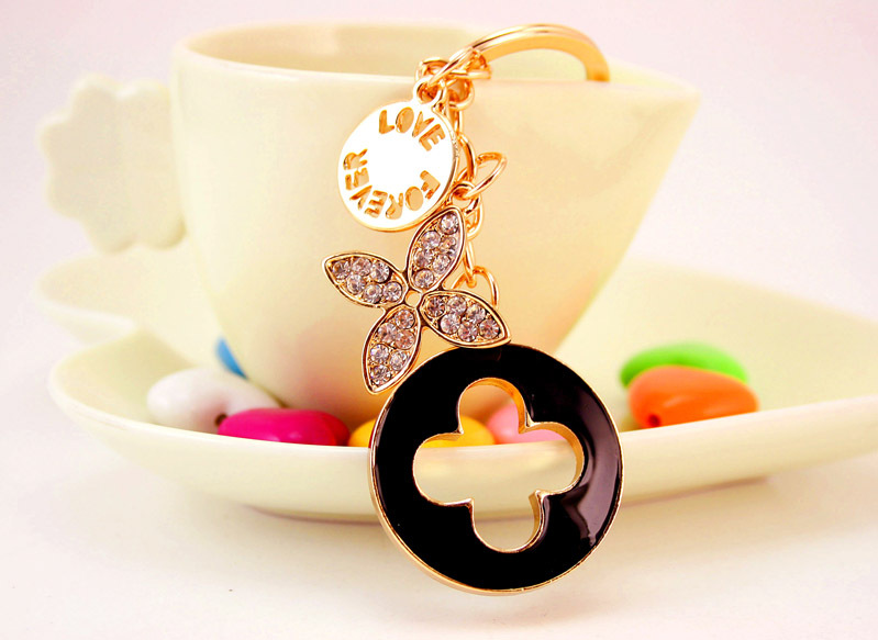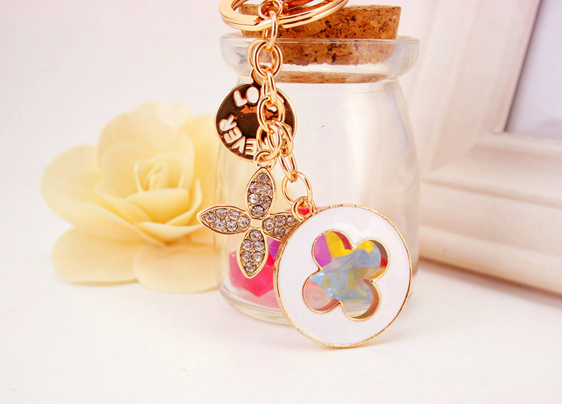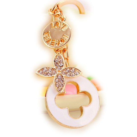 Clover Flower Crystal Diamante Rhinestone Bag Charms Handbag Keyrings Pendant Key Chain