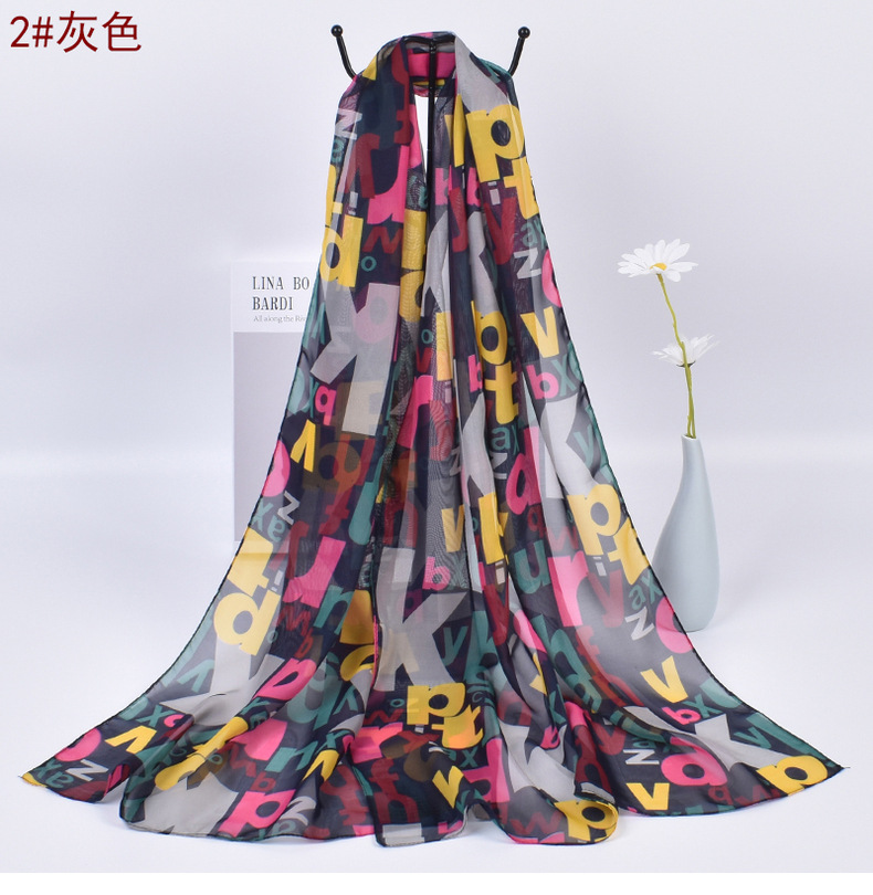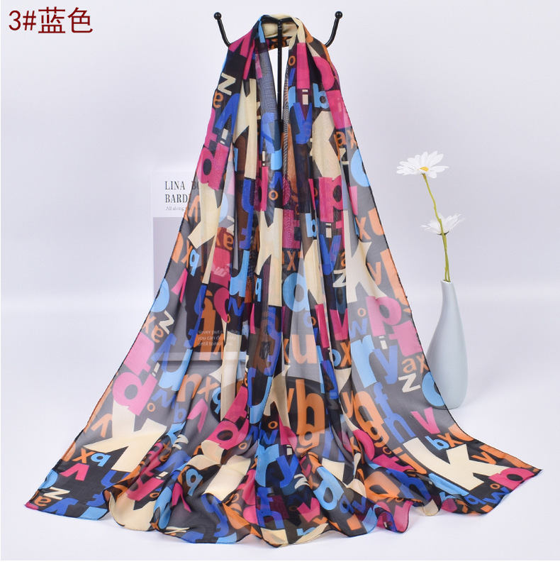 Colorful Alphabet Letters Patterned Fashion Ladies Chiffon Scarf Shawls X523