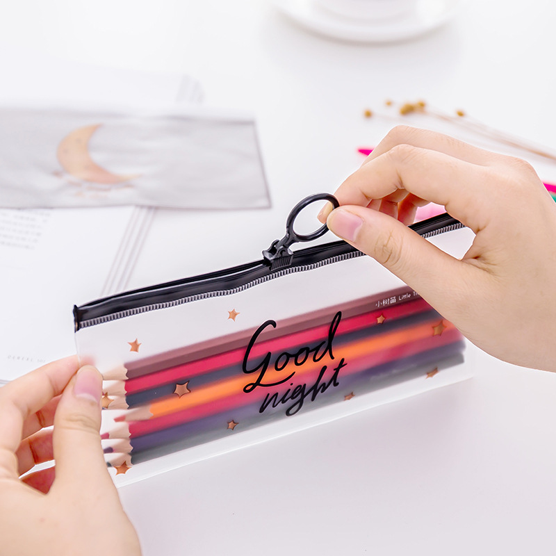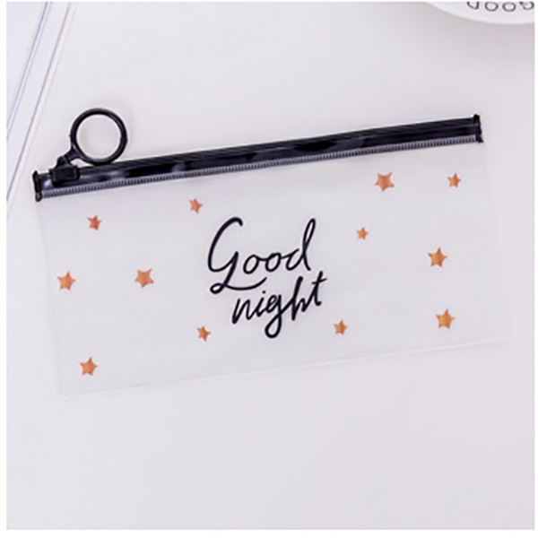 Cute Black White Good Night Plastic See-through Pencil Cases Cosmetics Make Up Bags Pen Pouches