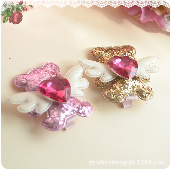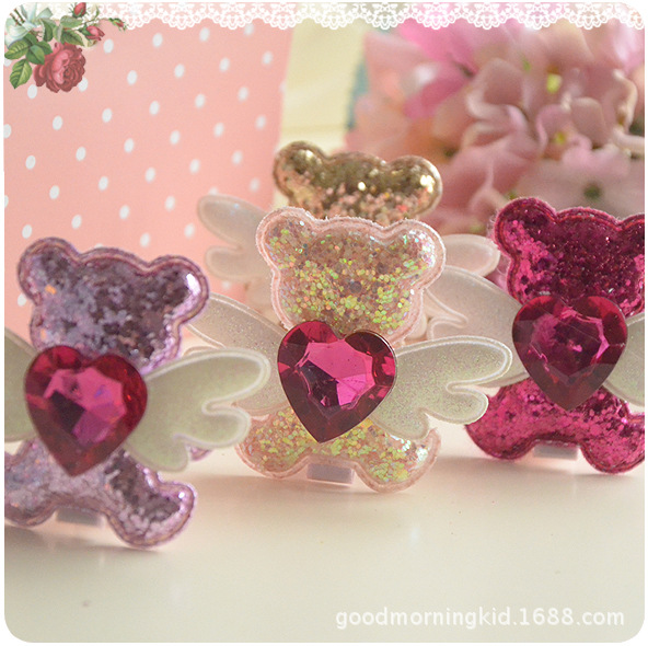Details:Cute Bling Bling Glitter Angel Bear Hair Clip