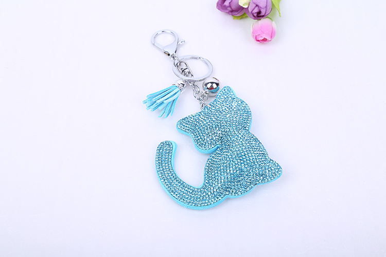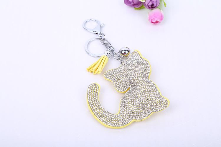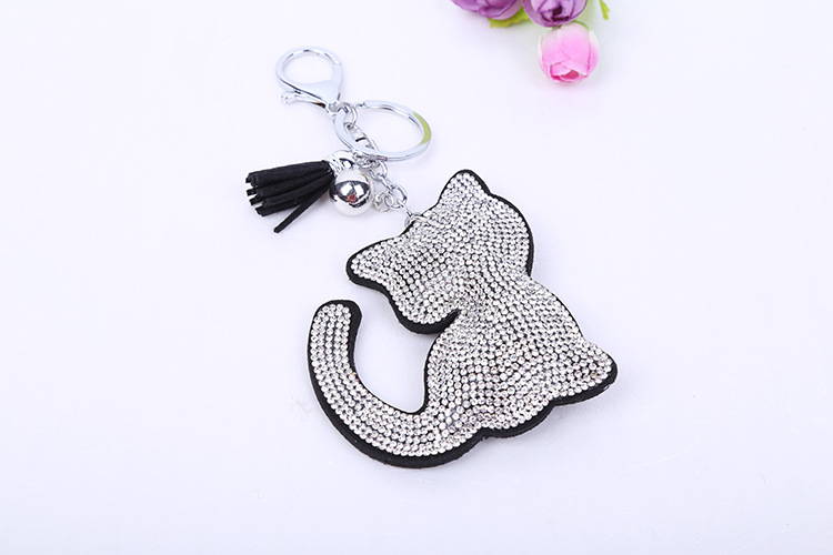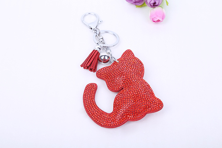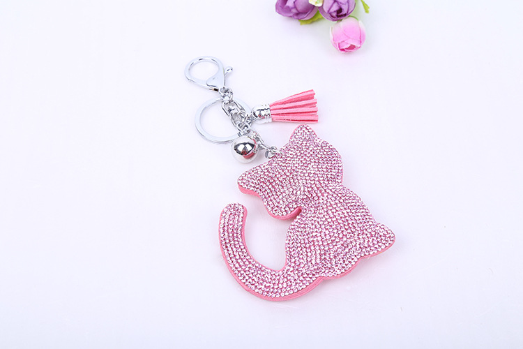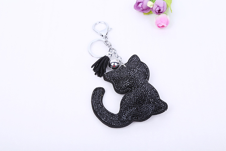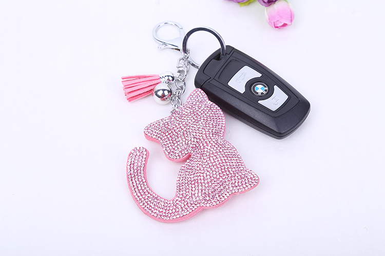 Cute Kitten Cats Leather Crystal Diamante Rhinestone Bag Charms Handbag Keyrings Pendant Key Chain