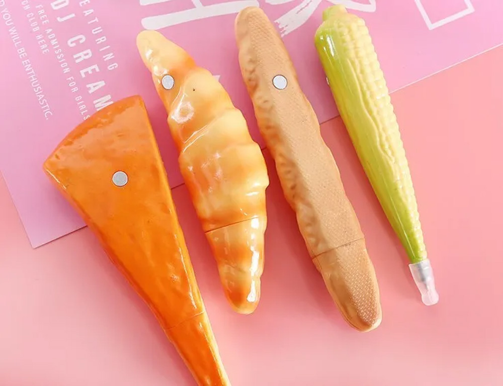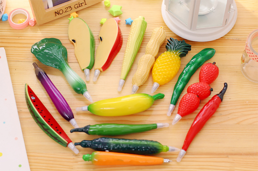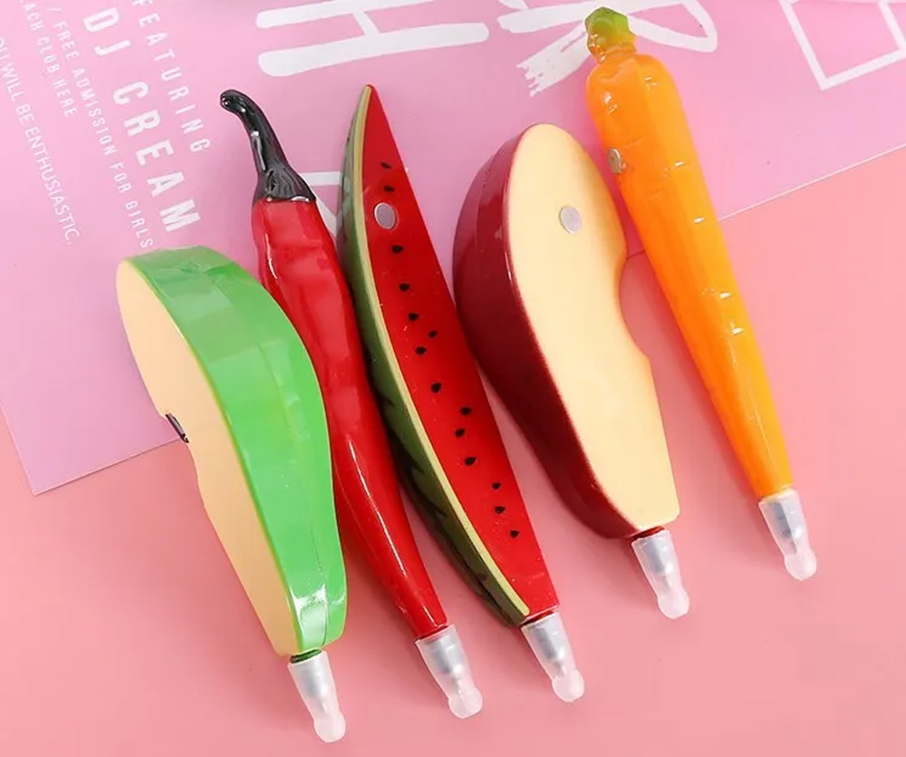 All magnetic fruit vegetable bakery ballpoint pens are finished in exquisite details and look like the real pieces of fruit or vegetable.