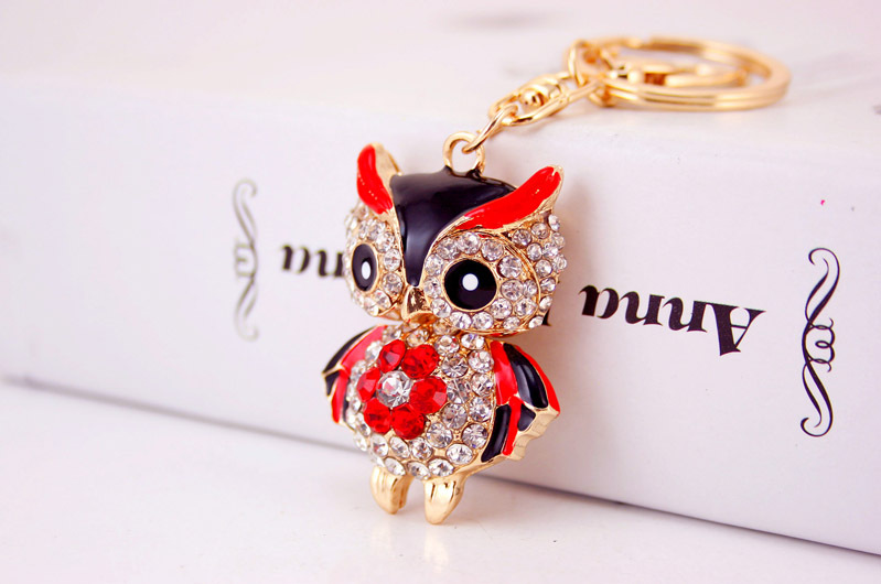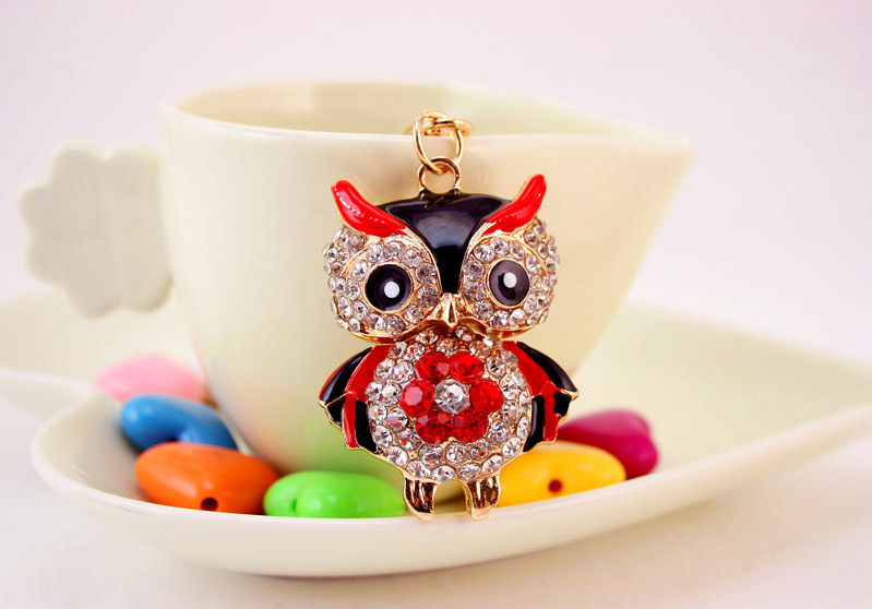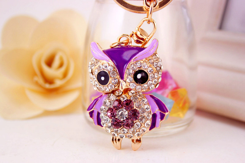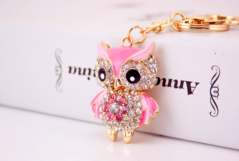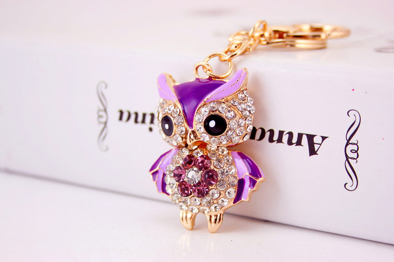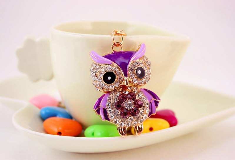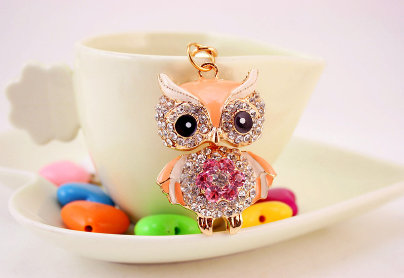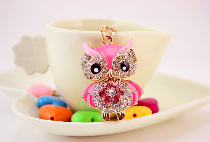 Details:Cute Owl Crystal Diamante Bag Charm Handbag Keyring Pendant