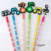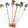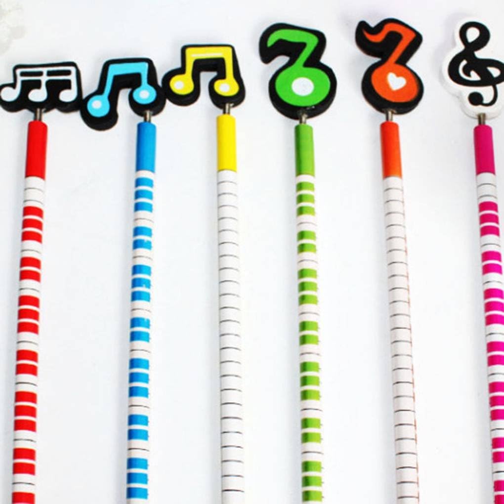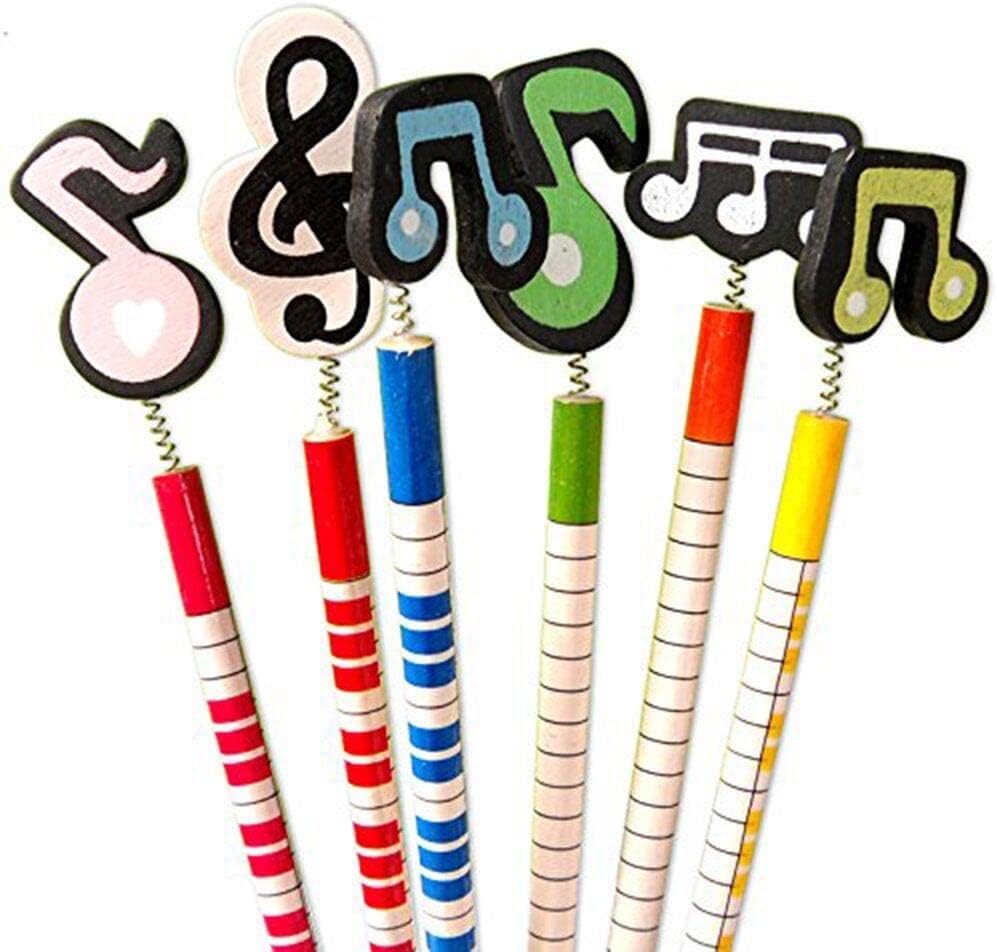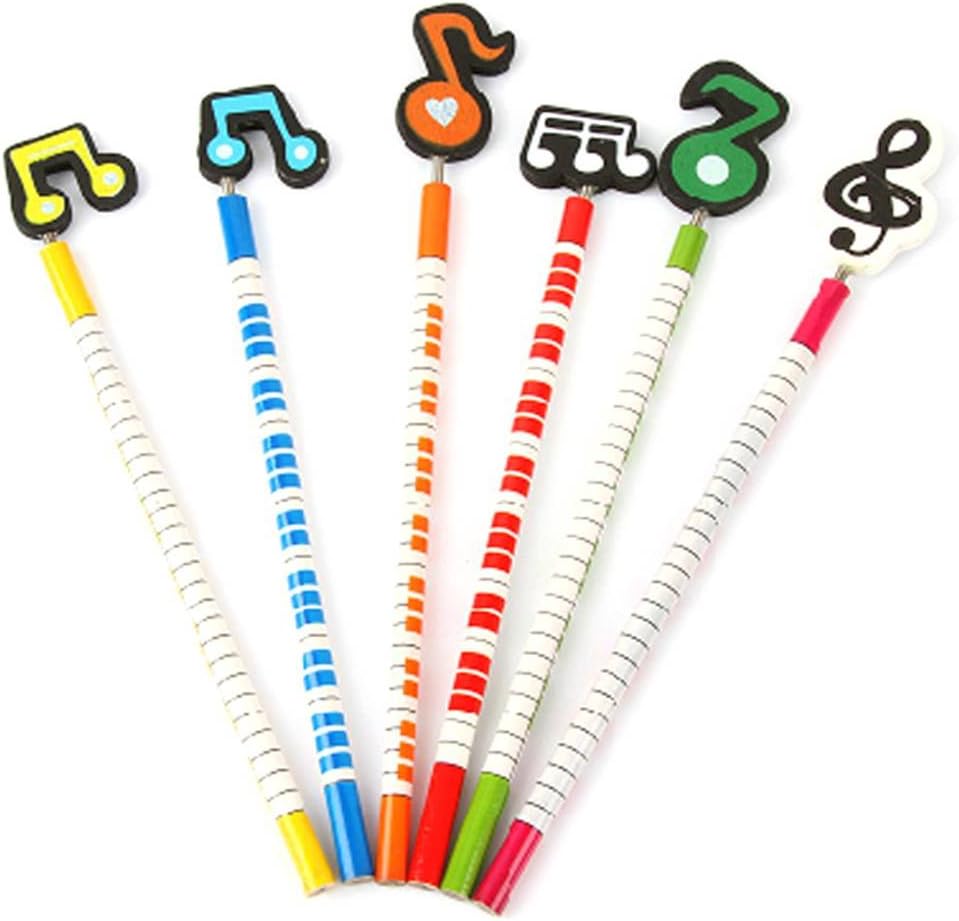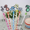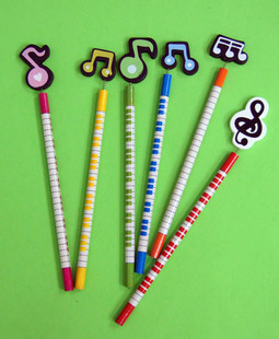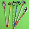 Colourful pencils with wooden decoration in assorted musical notes designs.