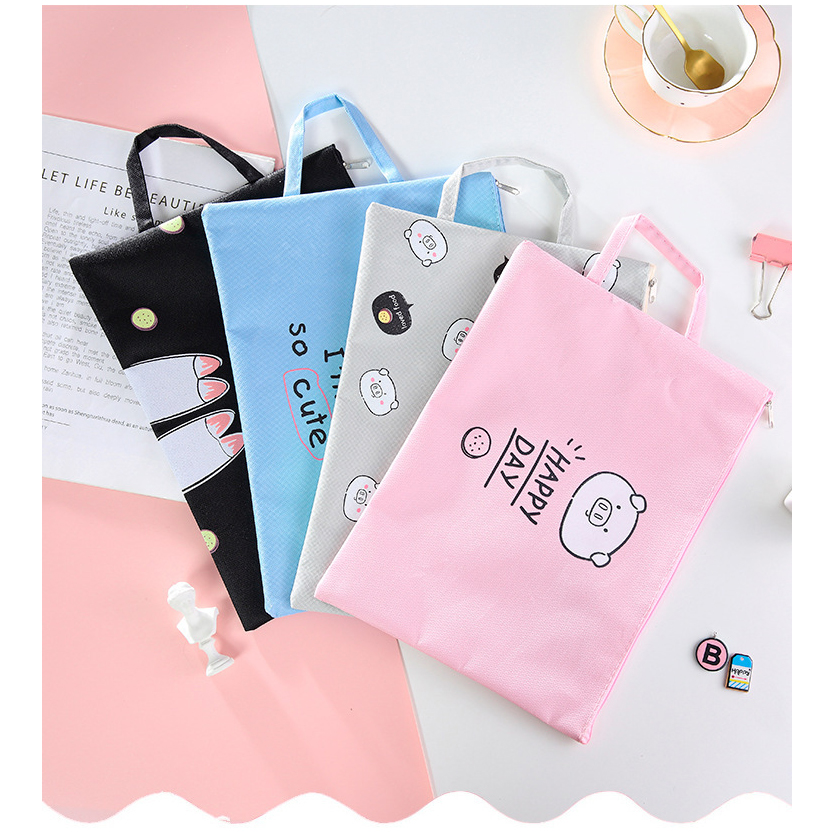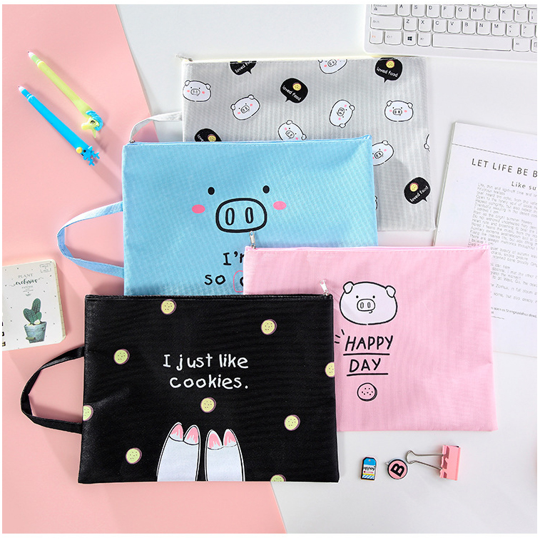 Cute Pig Piglet Animals Canvas Fashion A4 Document Wallets File Folders