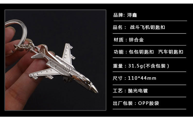 Fighter Jet Military Air Plane Aeroplane Silver Metal Keyring Key Chain Novelty Gift