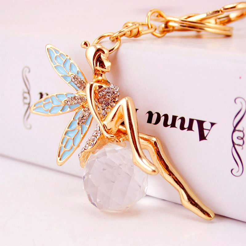 Details:Fairy Angel Fantasy Girl Crystal Diamante Bag Charms Handbag Keyrings Pendant