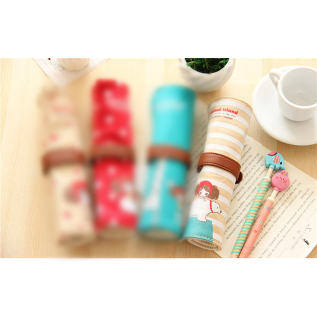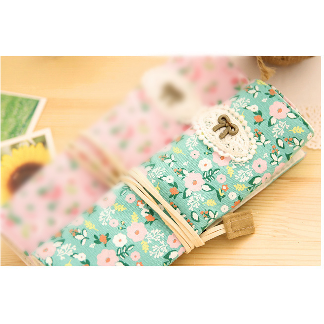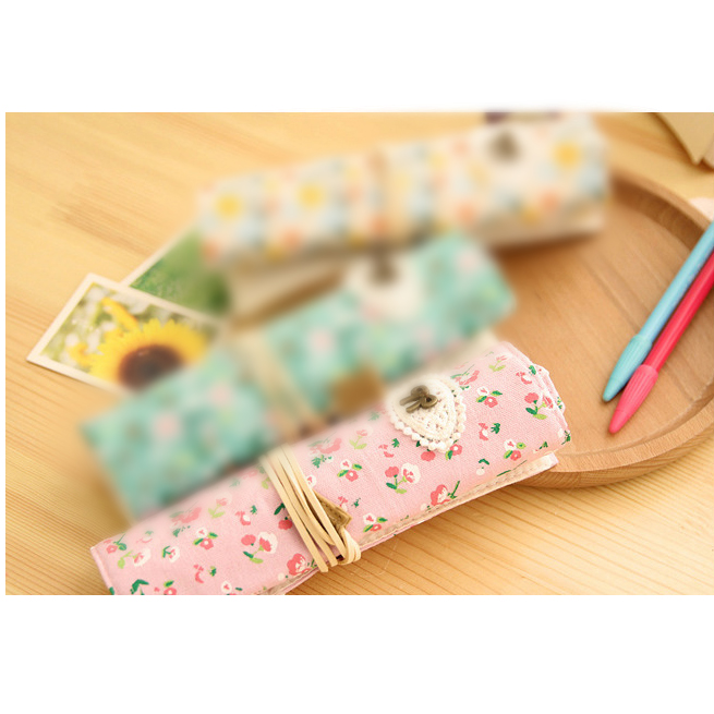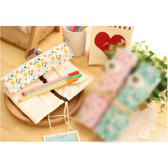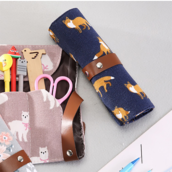 Details:Fashion Animals Flowers Pattern Roll Up Wrap Canvas Fabric Pencil Case Pen Pouch