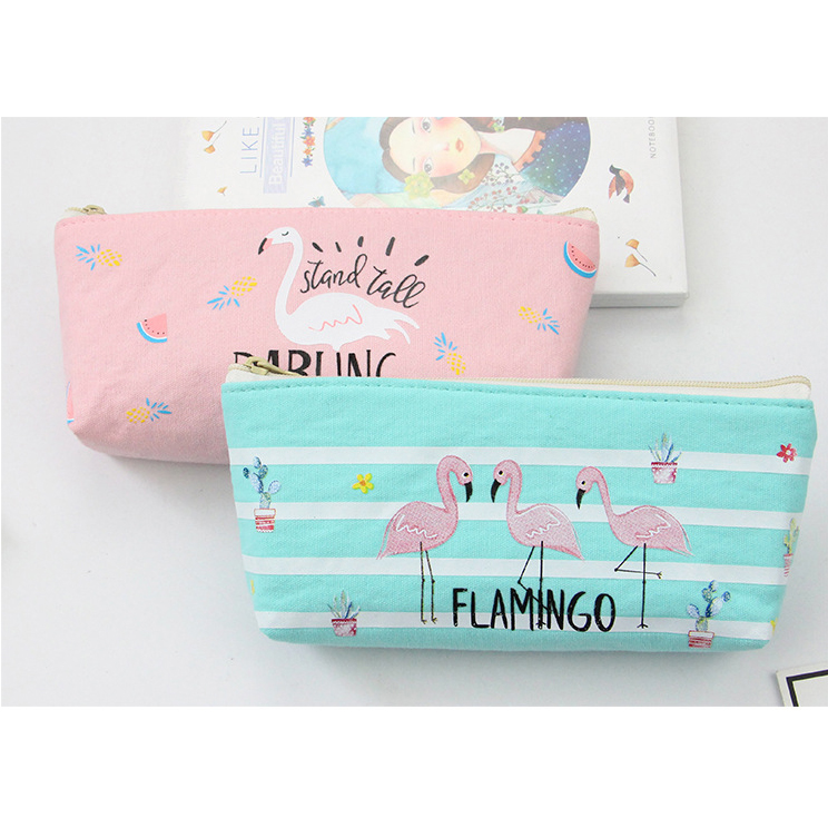 Details:Flamingo Wild Animals Canvas Cute Pencil Cases Cosmetics Make Up Bags Pen Pouches