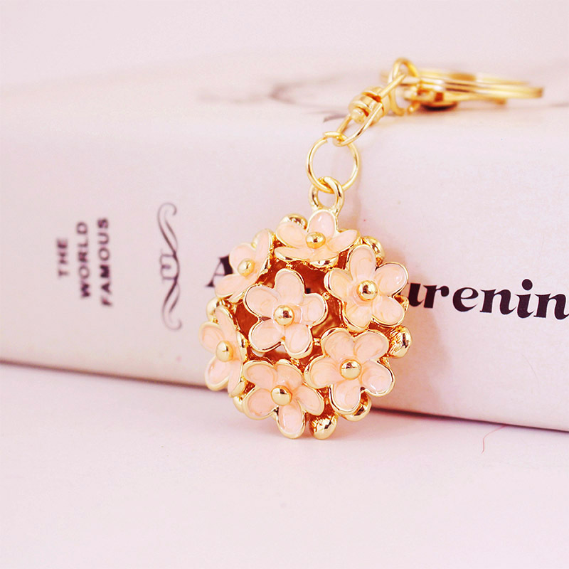 Flower Ball Cherry Blossom Flowers Bag Charms Handbag Women Keyrings Pendant