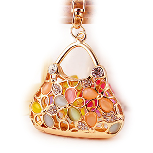 A very attractive design in flower handbag shape with sparkling crystal diamante rhinestones. This bag charm / handbag keyring is a very unique gift for your loved one on special occasions.