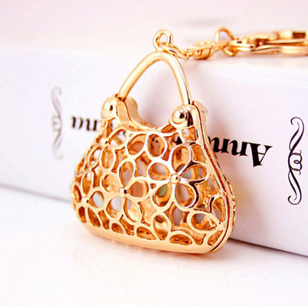 Flower Handbag Shaped Crystal Diamante Rhinestone Bag Charms Handbag Keyrings Pendant Key Chain